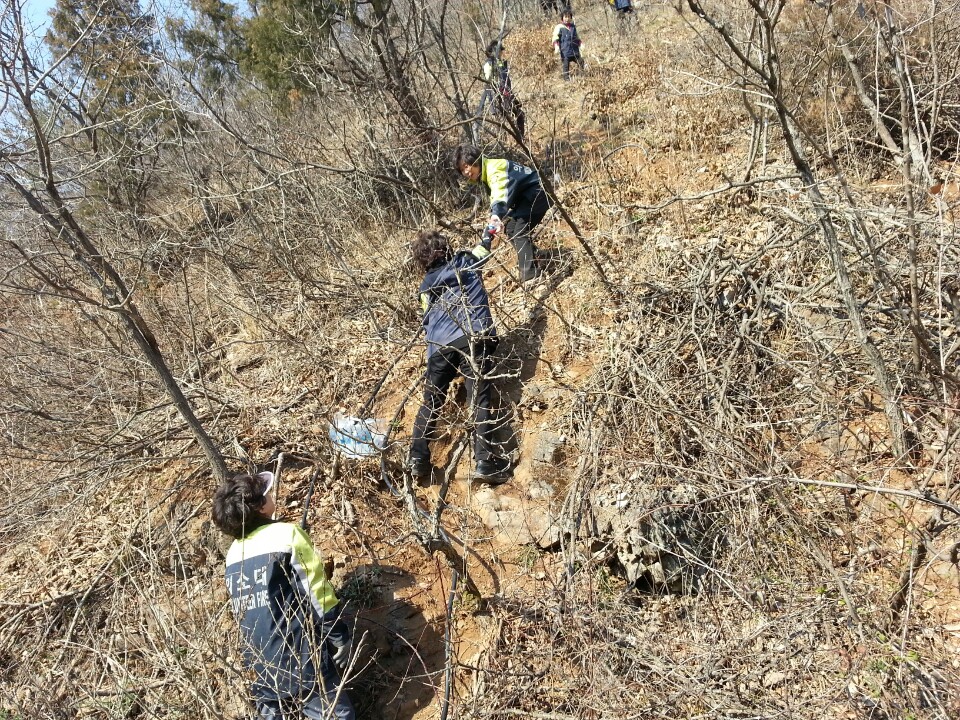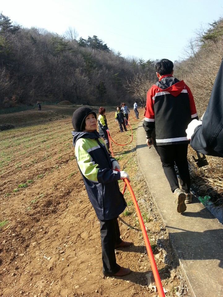 대장(최금순)외 12명 호스끌고 산으로 올라가서 조금이나마 도움되고저 대원들 열심히 활동하였습니다.