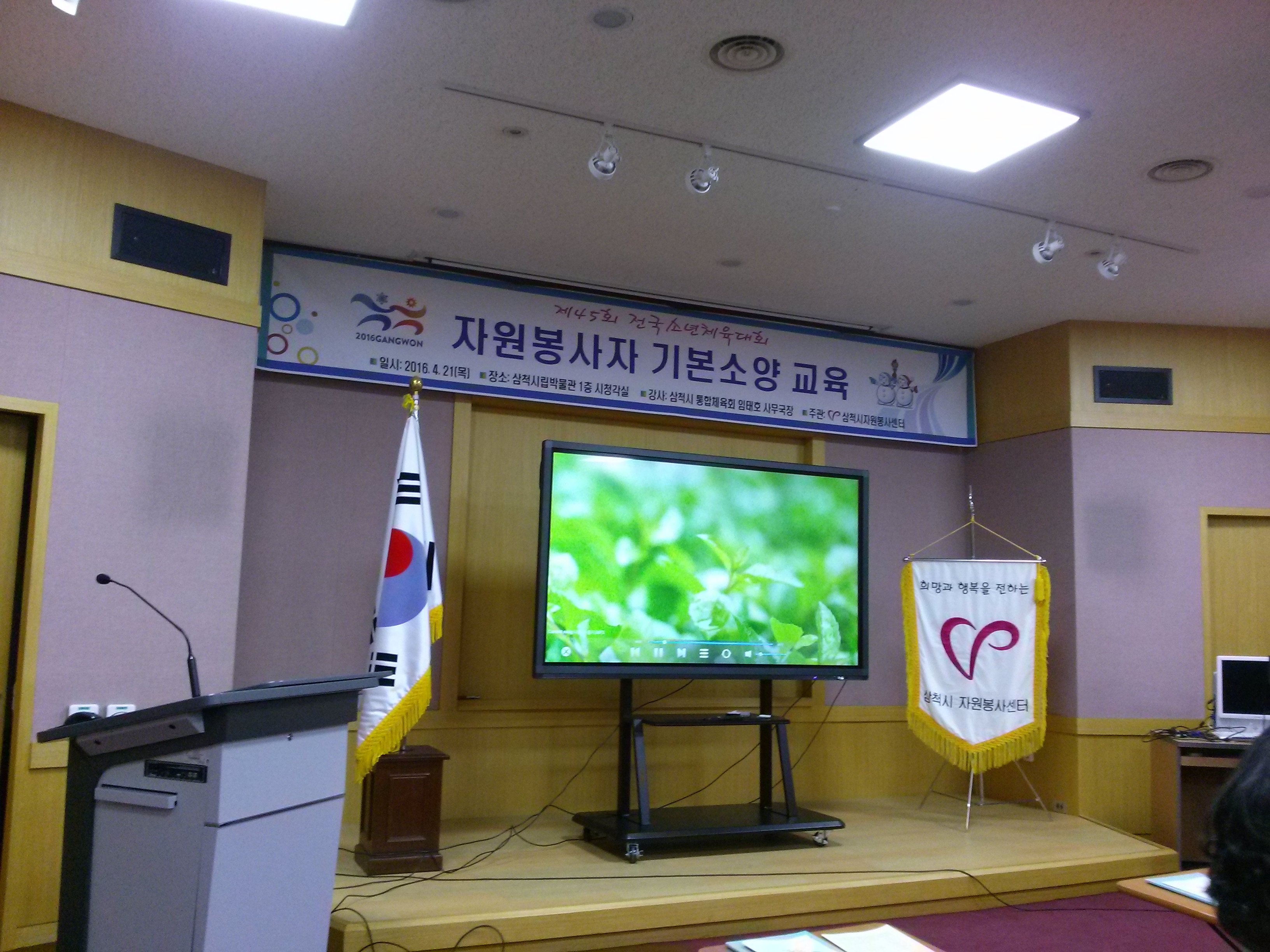 2016. 4. 21자원봉사센터 주관 전국소년체전 자원봉사자 기본소양교육 참가