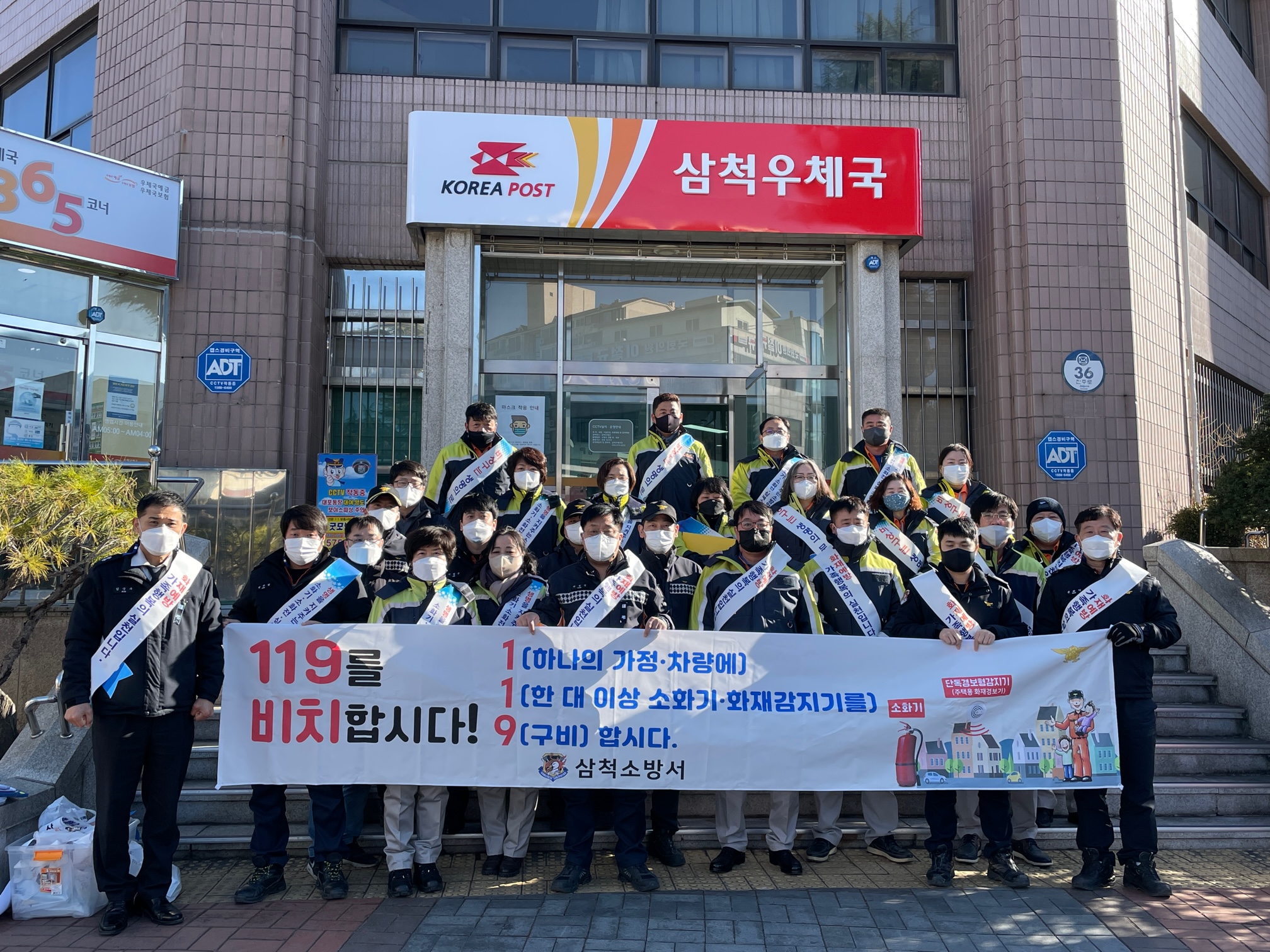 이번 캠페인은 코로나19 방역수칙을 철저히 준수하며 삼척 중앙시장 일대에서 소방서 직원 13명과 의용소방대원 17명이 참여하여 진행됐다.