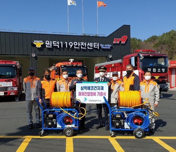 | 747 | (주)에코건자재, 삼척소방서원덕남성의용소방대에 산림화재진화용 고압펌프 기증 | 삼척홍보 | 2022-04-11 | 1090 | |