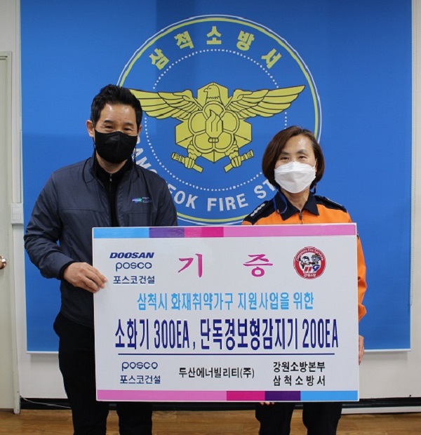 | 751 | 삼척 화력발전 건설사 두산에너빌리티‧포스코건설, 주택용 기초소방시설 기증 | 삼척홍보 | 2022-04-14 | 1143 | |