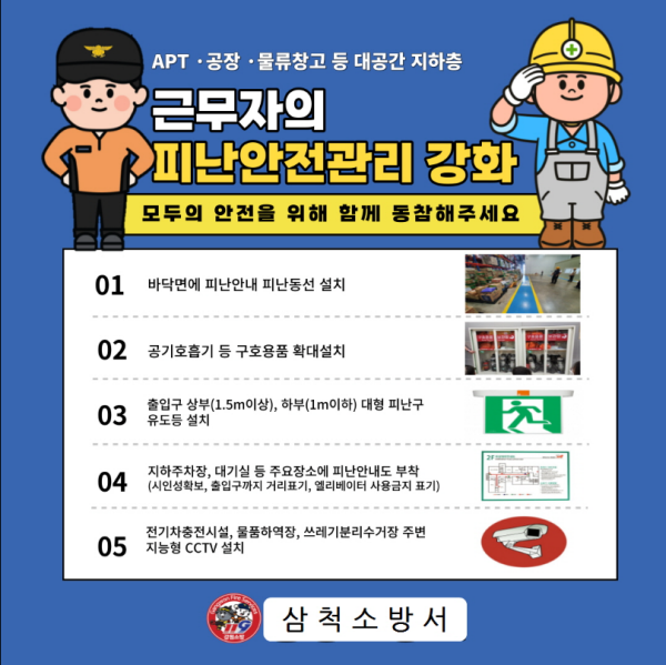 | 854 | 삼척소방서, 대공간 지하층 피난 안전관리 강화 당부 | 삼척홍보 | 2023-02-16 | 1630 | |