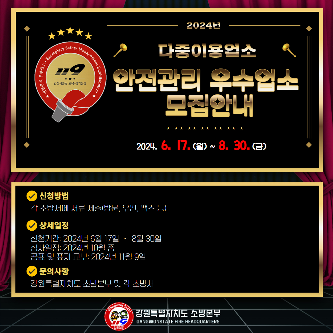 삼척소방서에서 2024년 우수다중업소 선정을 공지합니다.