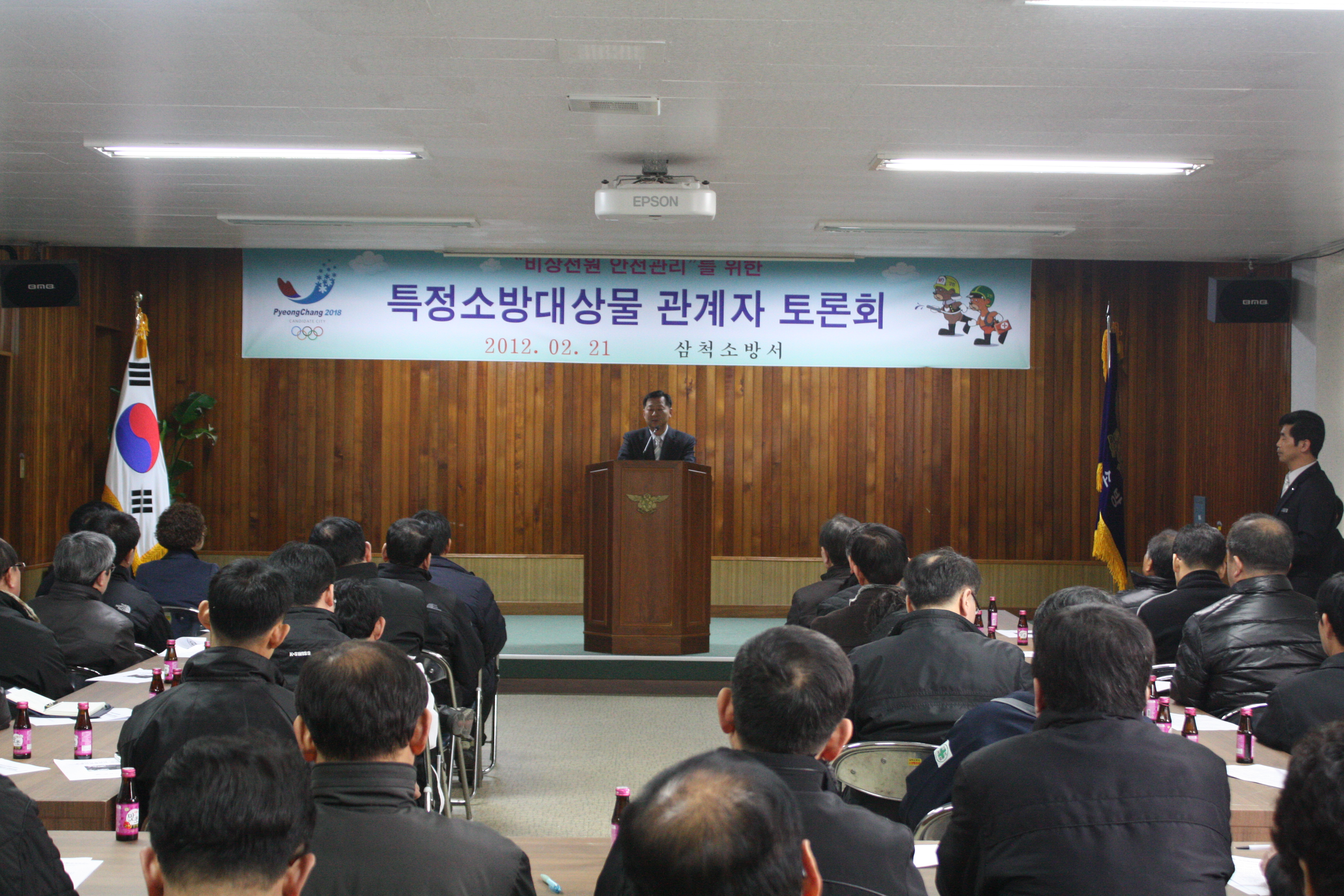 삼척소방서(서장 김상철)는 2월 21일 14시 화재 등 재난발생시 정전으로 발생할 수 있는 소방시설 미작동으로 인한 인명 및 재산피해 방지를 위해 관내 아파트 등 특정소방대상물 소방안전관리자에 대하여 소방시설 작동용 비상전원 안전관리에 대한 교육 및 토론회를 가졌다.