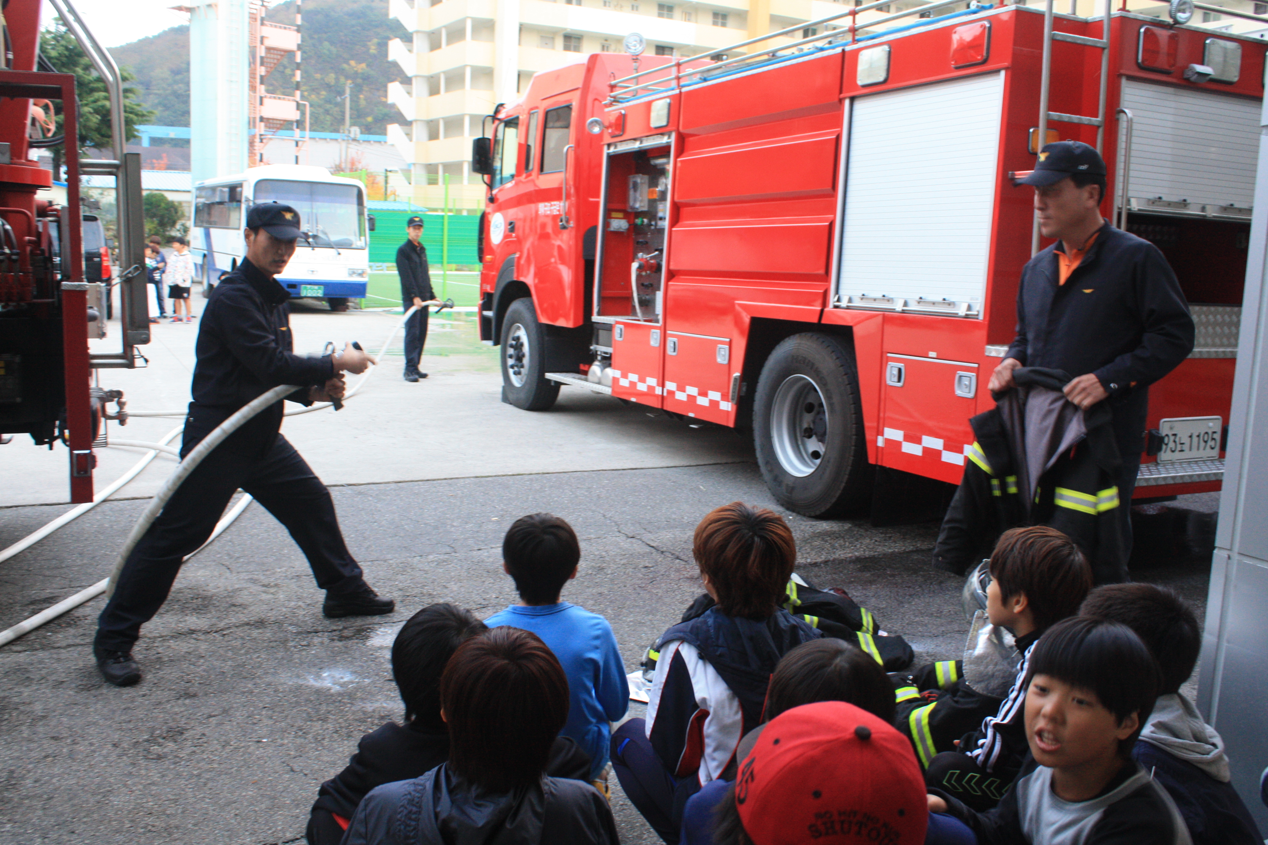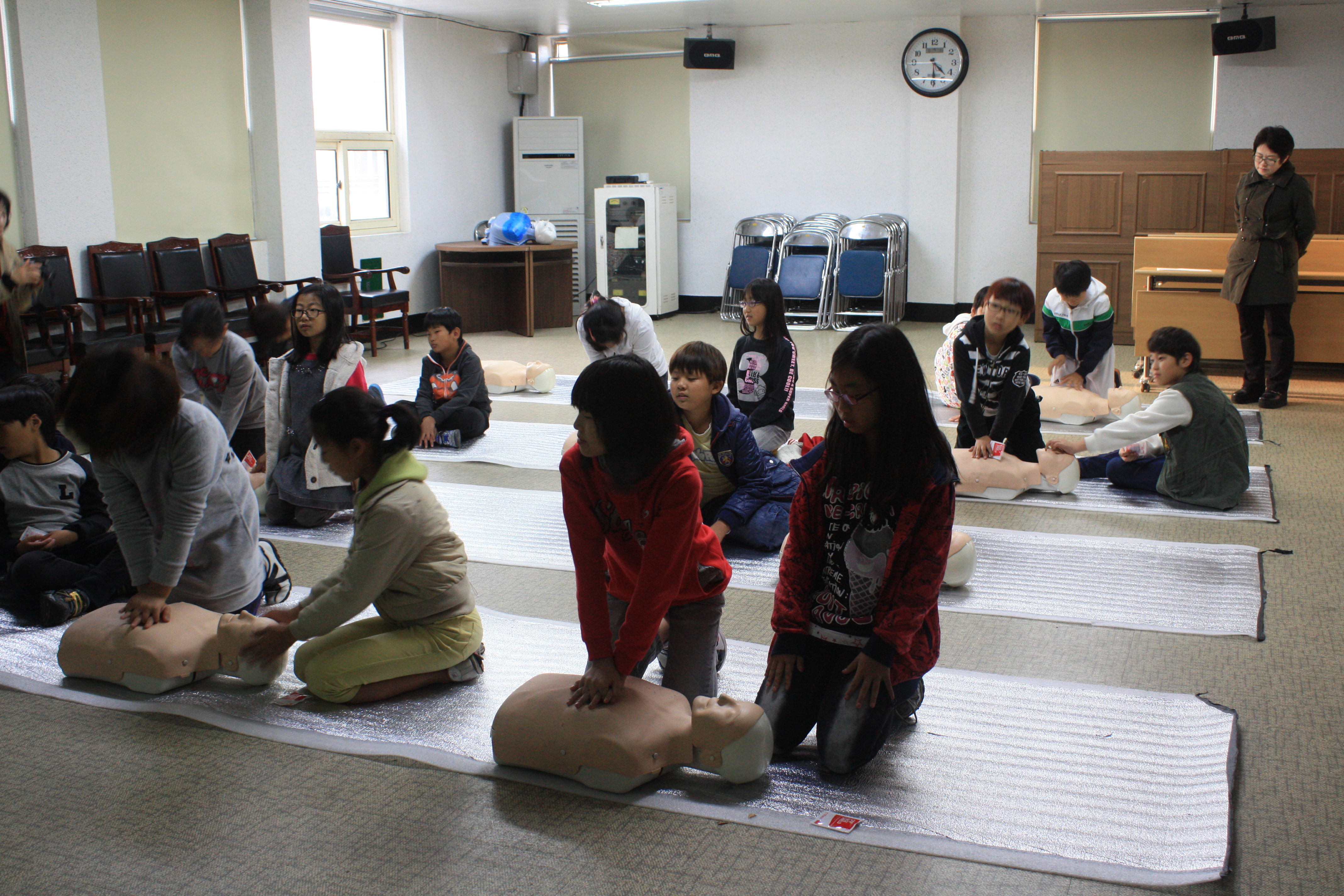 △ 삼척소방서 (서장 이지만) 는 2012년 10월 24일 오후 16시부터 청소년 수련관 학생 24명과 함께 삼척소방서 대회의실 및 구조대 차고 앞에서 CPR (심폐소생술) 교육 및 방수체험, 연기체험 등을 실시하였습니다.