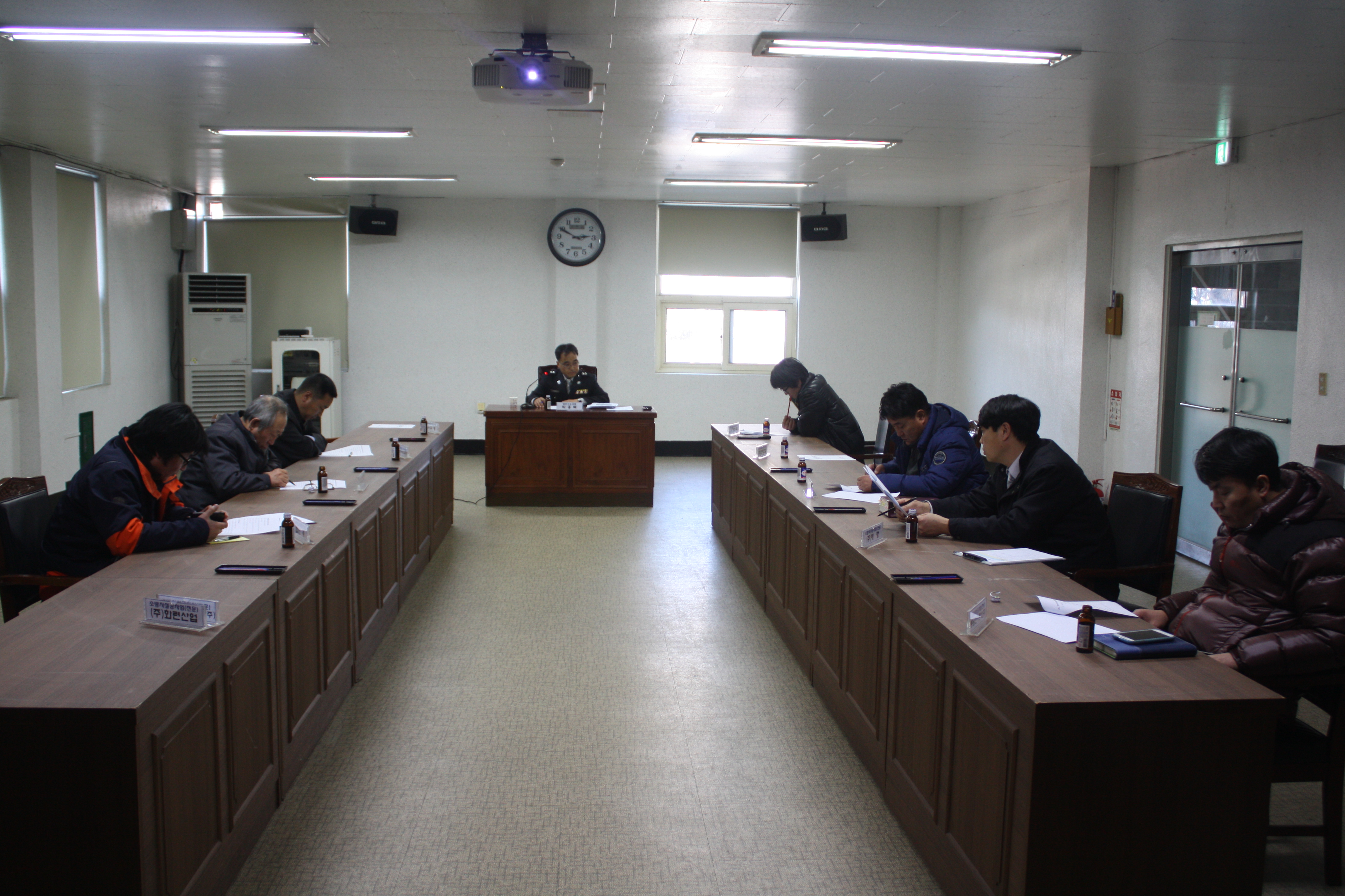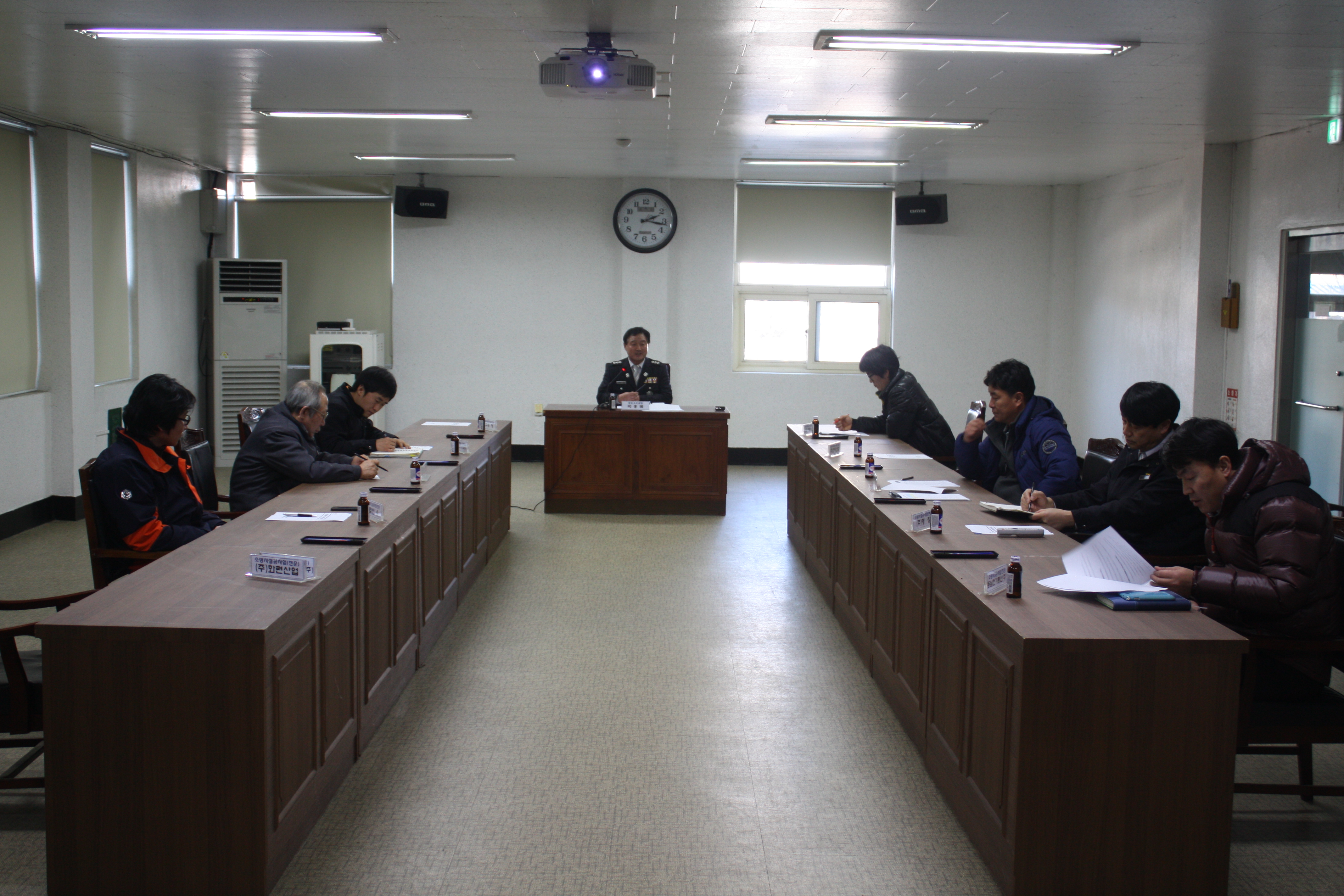 2013년 1월 25일(금) 14시 소방서 2층 대회의실에서 성공적 겨울철 소방안전대책을 추진하기 위해 관내 총 12개 소방시설업체(한일엔지리어링 대표 외 11명)가 참석한 가운데 간담회를 가졌다.