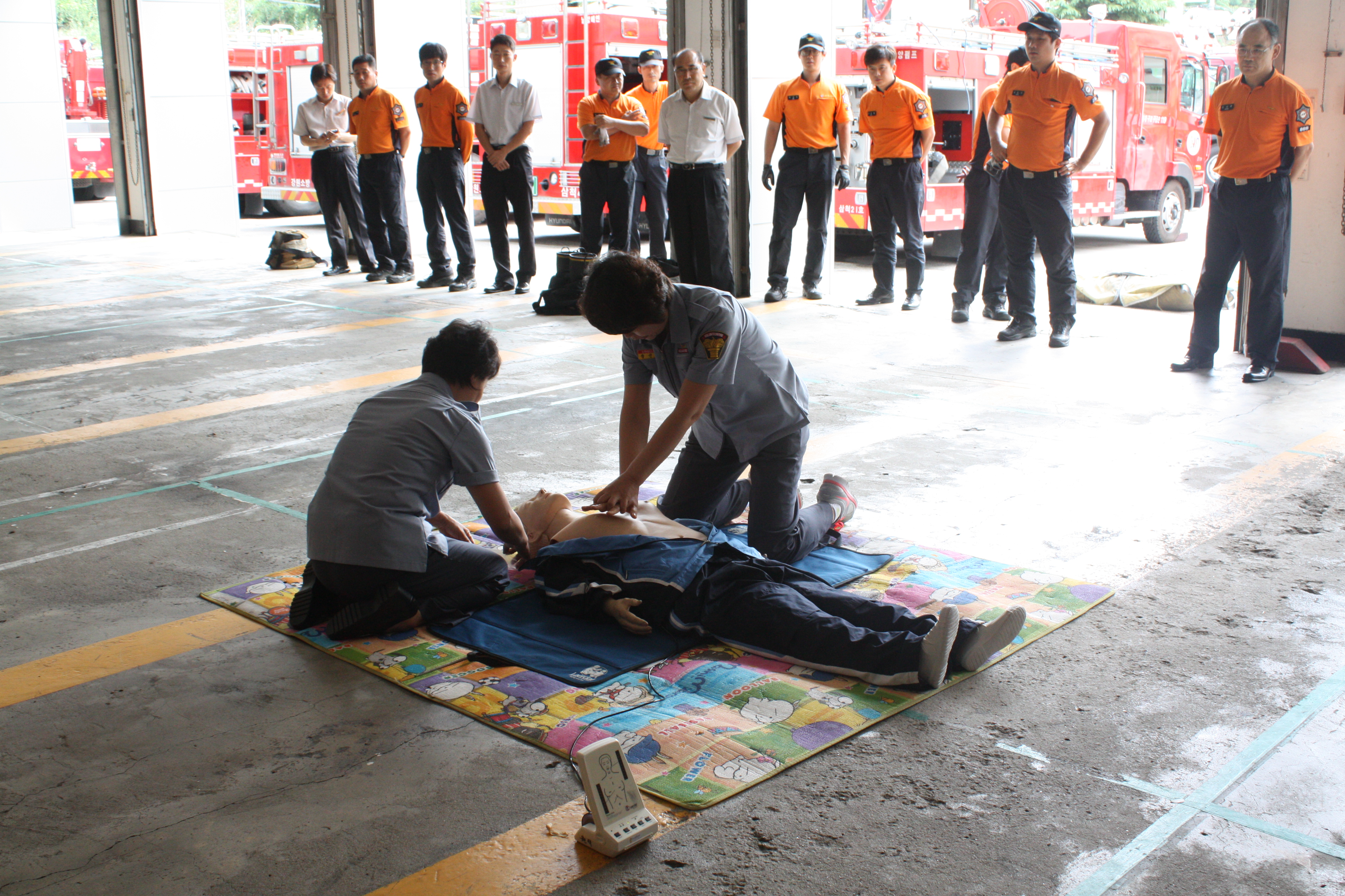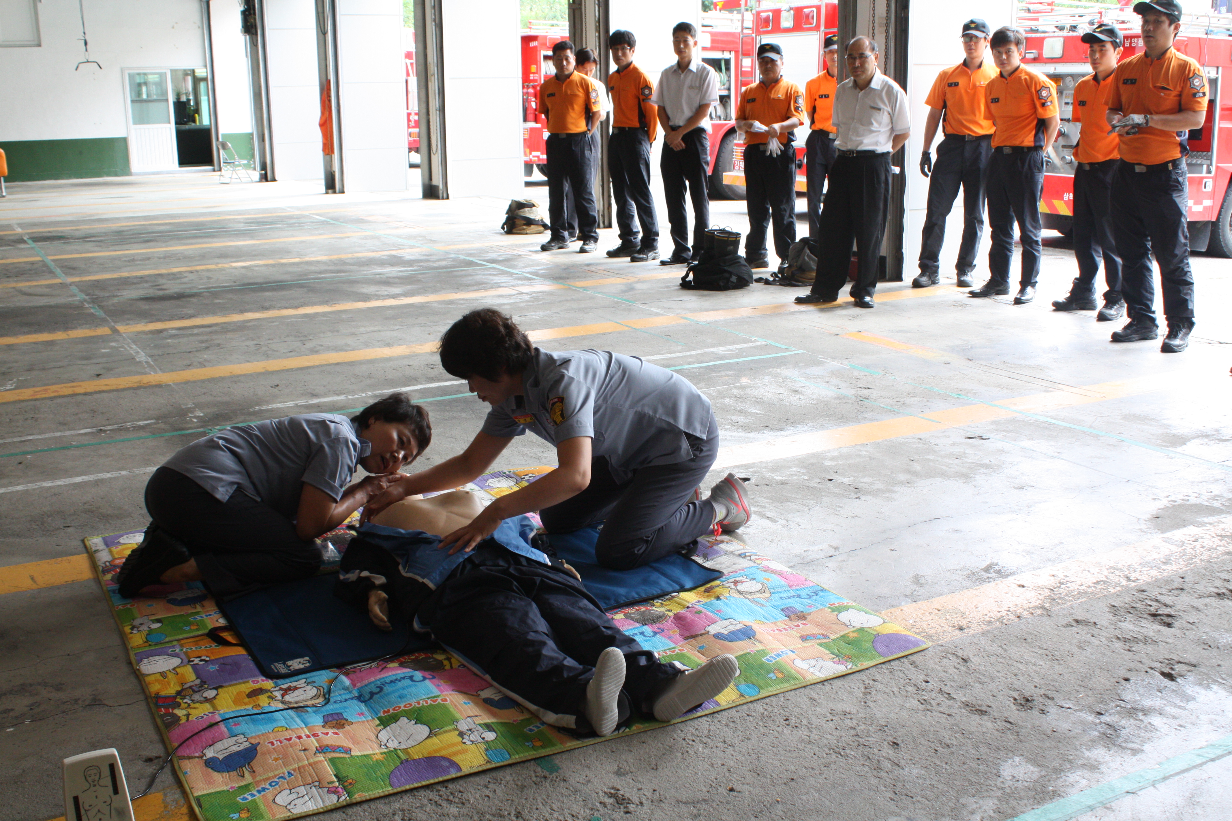 2013년 9월 16일 11시 차고에서 제 7회 강원도지사기 여성의용소방대 응급처치경연대회 출전을 위한 막바지 준비를 실시하였다.