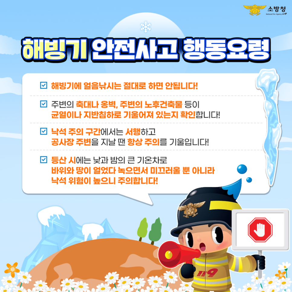 안전한 봄 맞이를 위한 해빙기 안전사고 예방 행동요령을 알려드립니다!