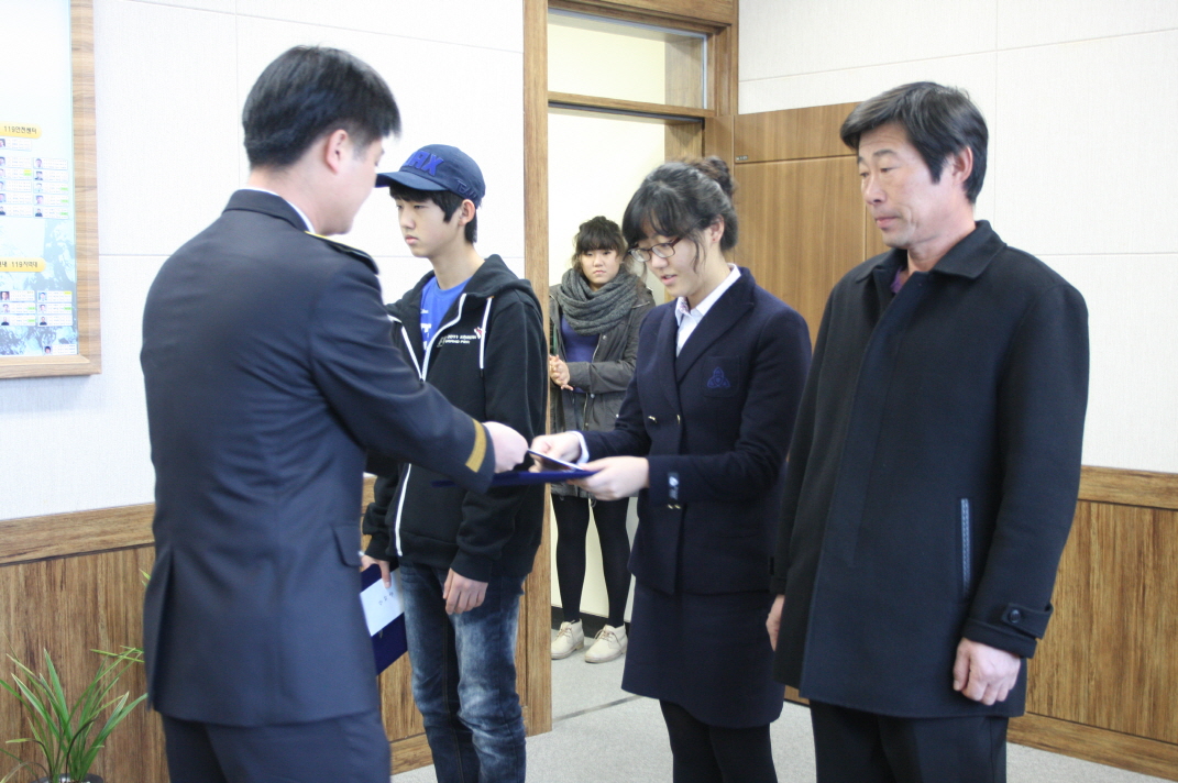 21일 10시 서장실에서 장학증서 및 장학금을 수여하였다.
