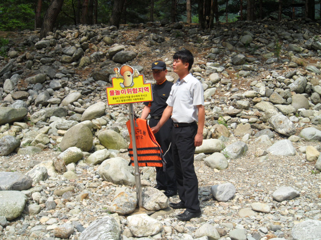 현재 관내에는 내수면 위험지역 표지판이 46개, 간이구조장비 58개, 위치정보표시판이 37개