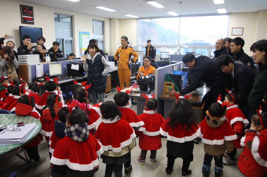지난 23일(수) 속초 늘푸른어린이집 천사들이 속초소방서(서장 강윤종)를 방문하여 대원들에게 감사 인사를 전하고 귀여운 캐롤과 율동을 선물해 주었습니다.