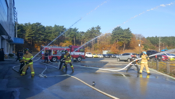 소화전이용 흡수 및 조작훈련 실시