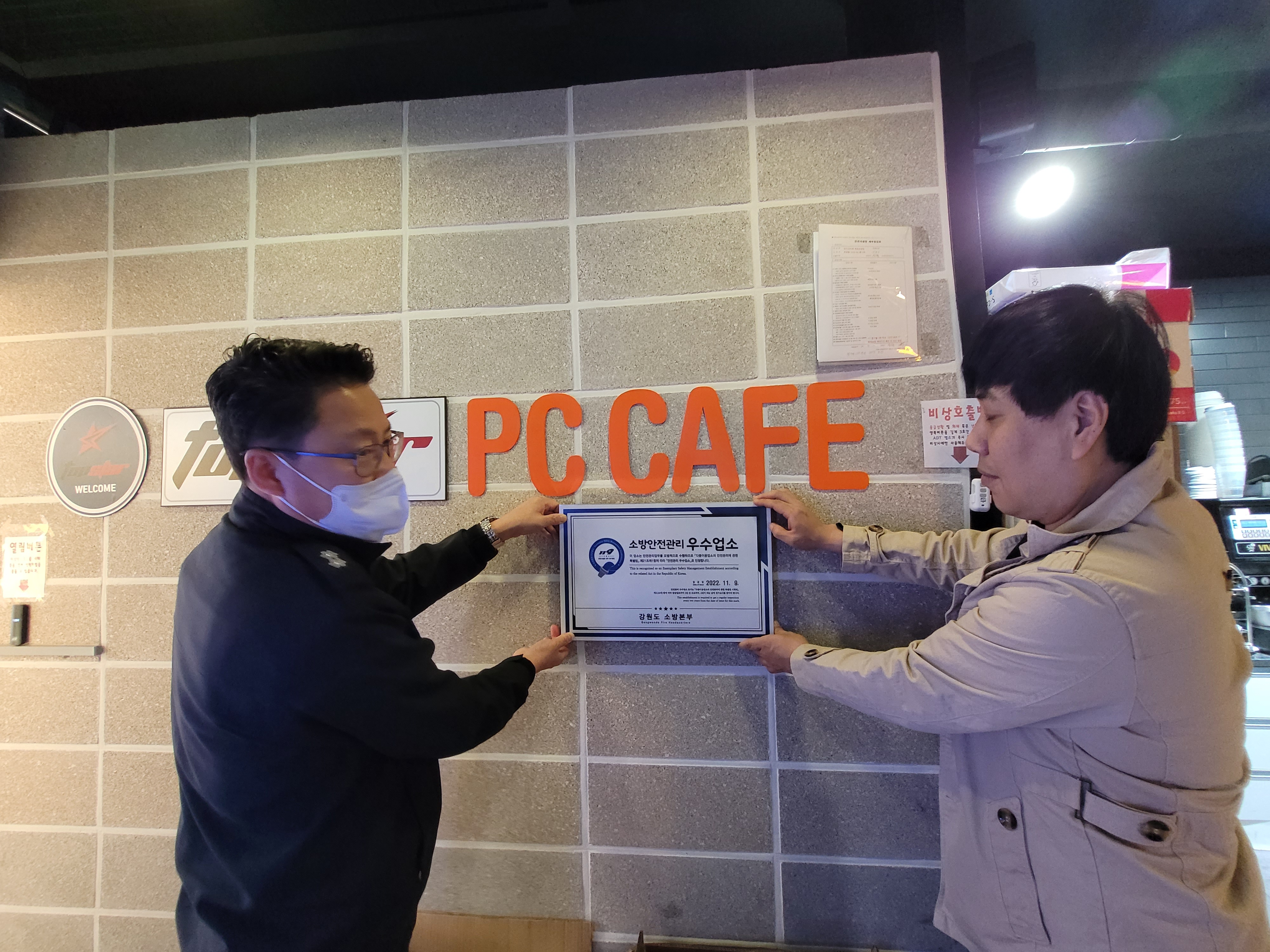 속초소방서(서장 장상훈)는 2022년 11월 9일 소방안전관리 다중이용업소 우수업소로 선정된 인디고PC 속초조양점 (조양로21번길 15)에 방문해 안전관리 우수업소 전수식을 가졌습니다.