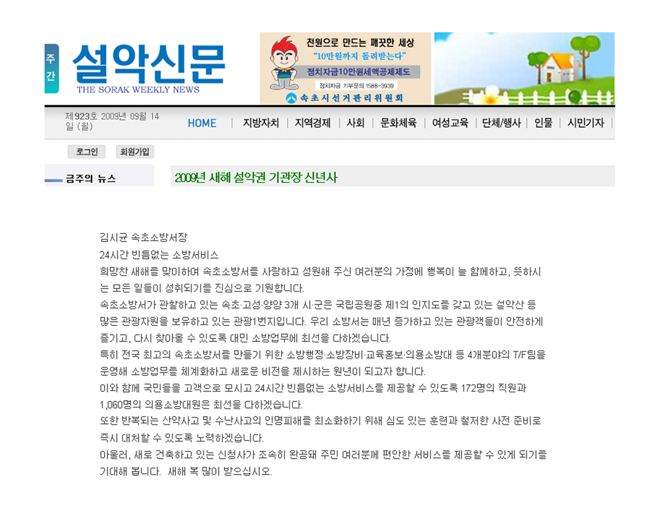 2009.1.20일자 설악신문
