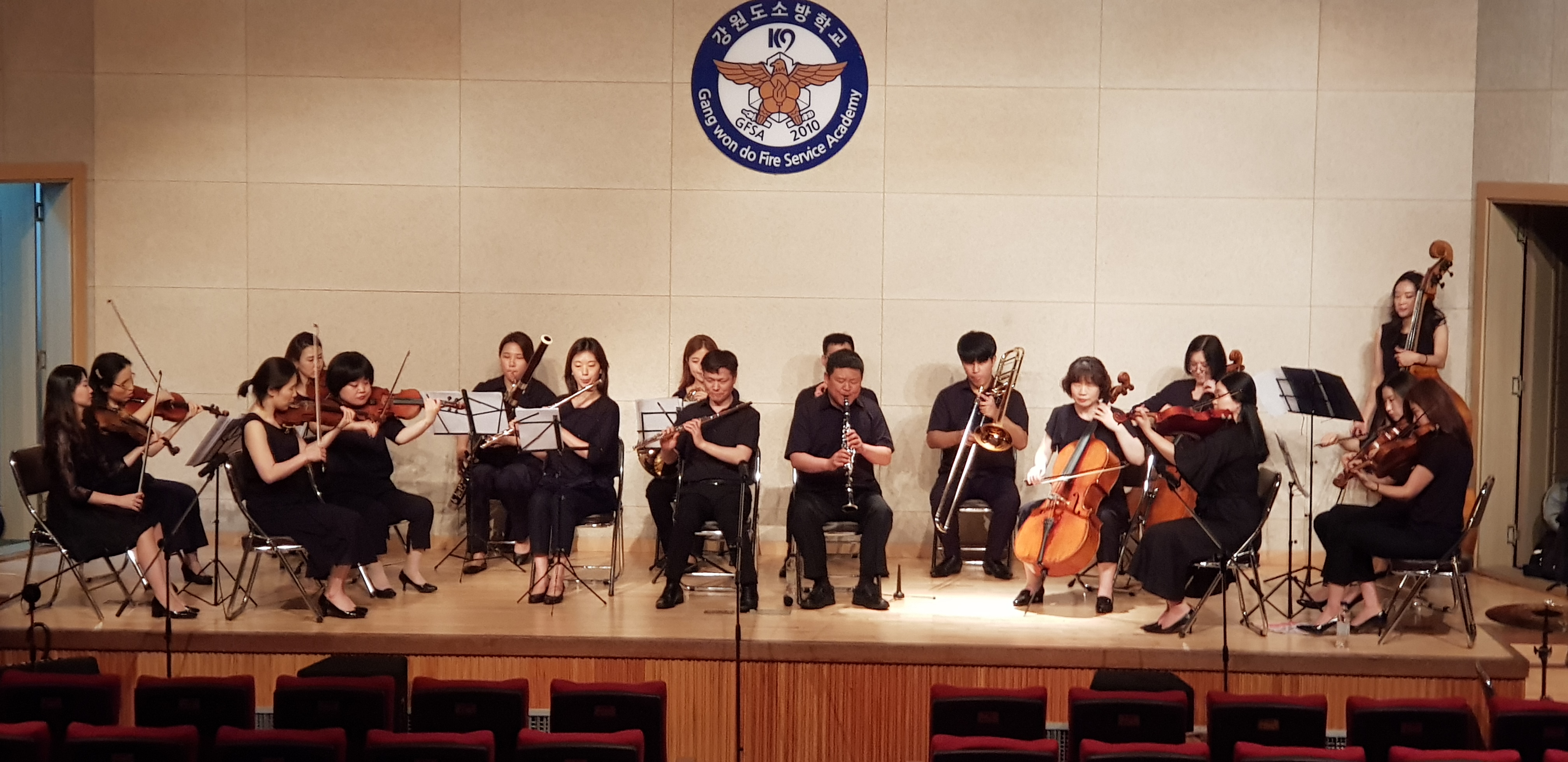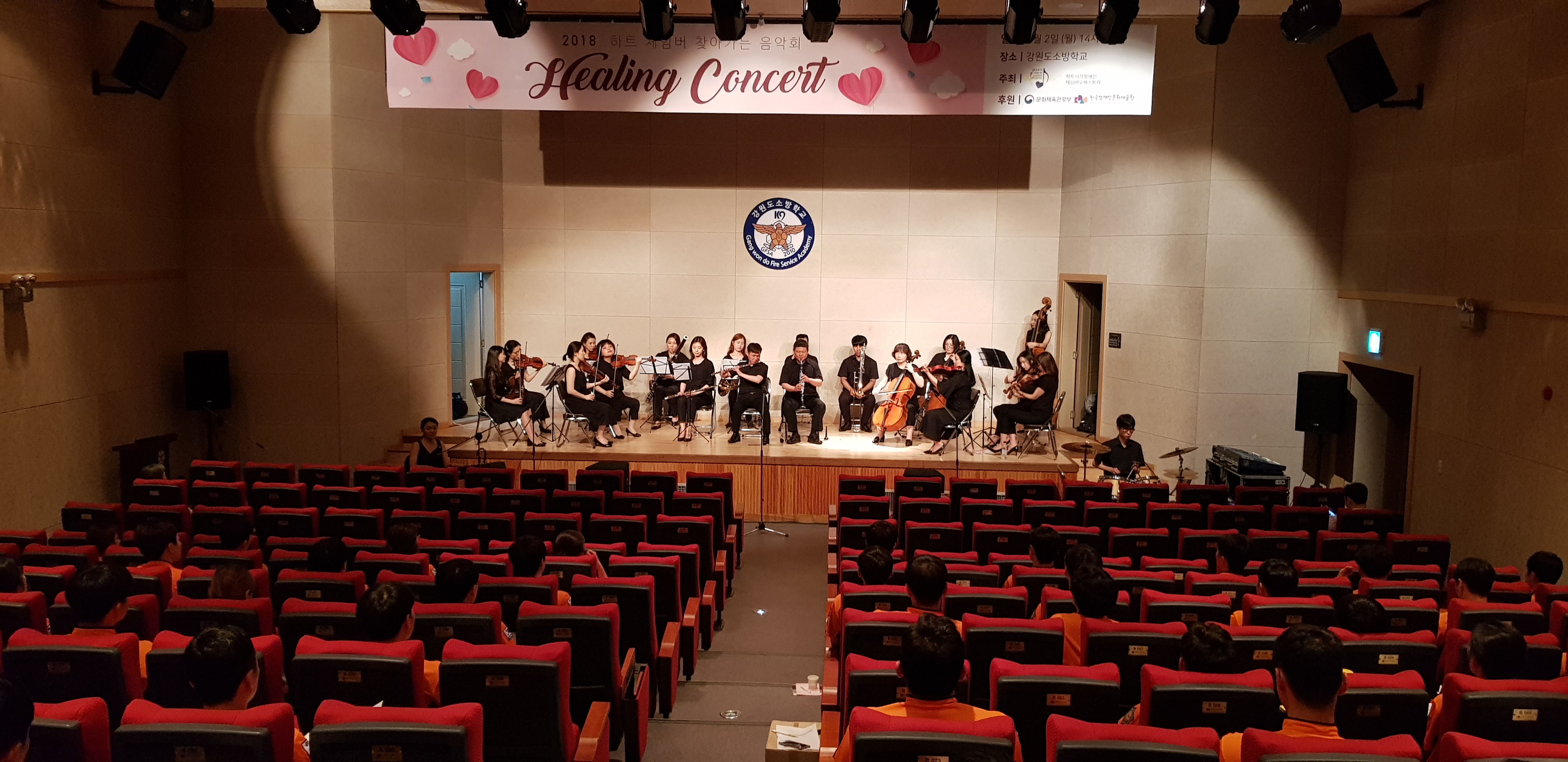 7월2일(월) 오후 2시 강원도소방학교 대강당에서 제26기 신임 소방사반 80명과 교직원을 대상으로 2018 하트 시각장애인 체임버 오케스트라를 초빙하여 음악회가 열렸습니다.