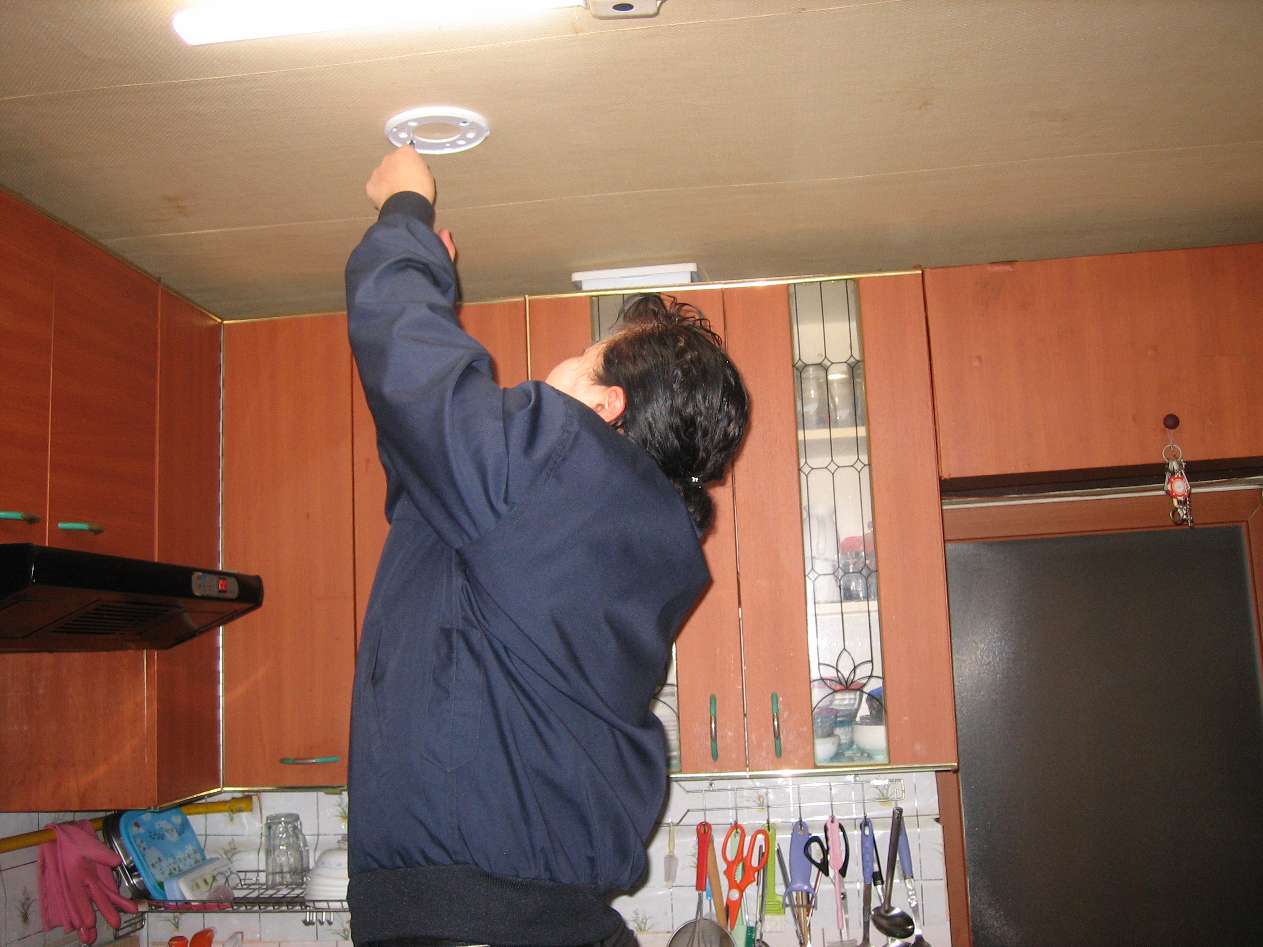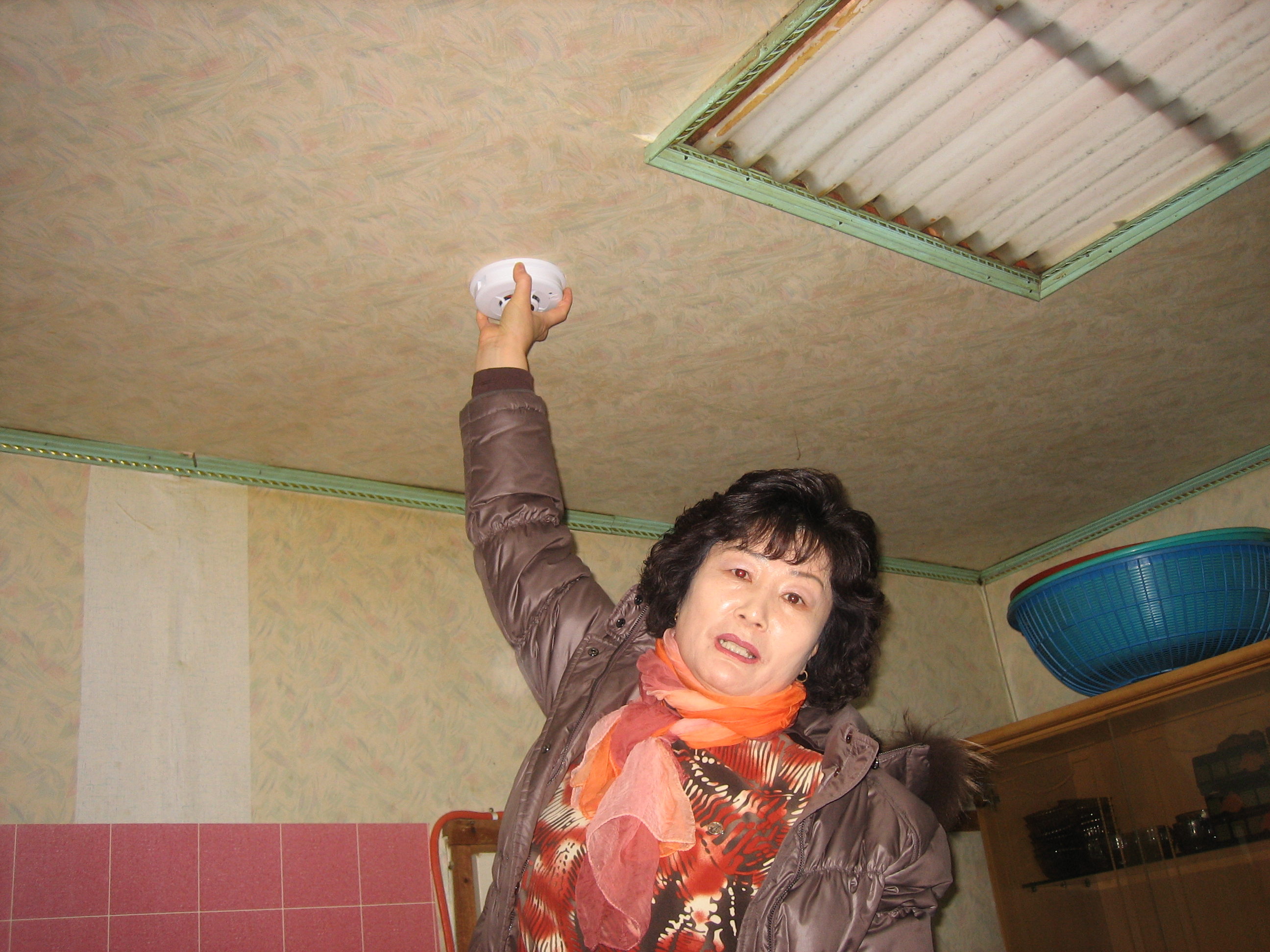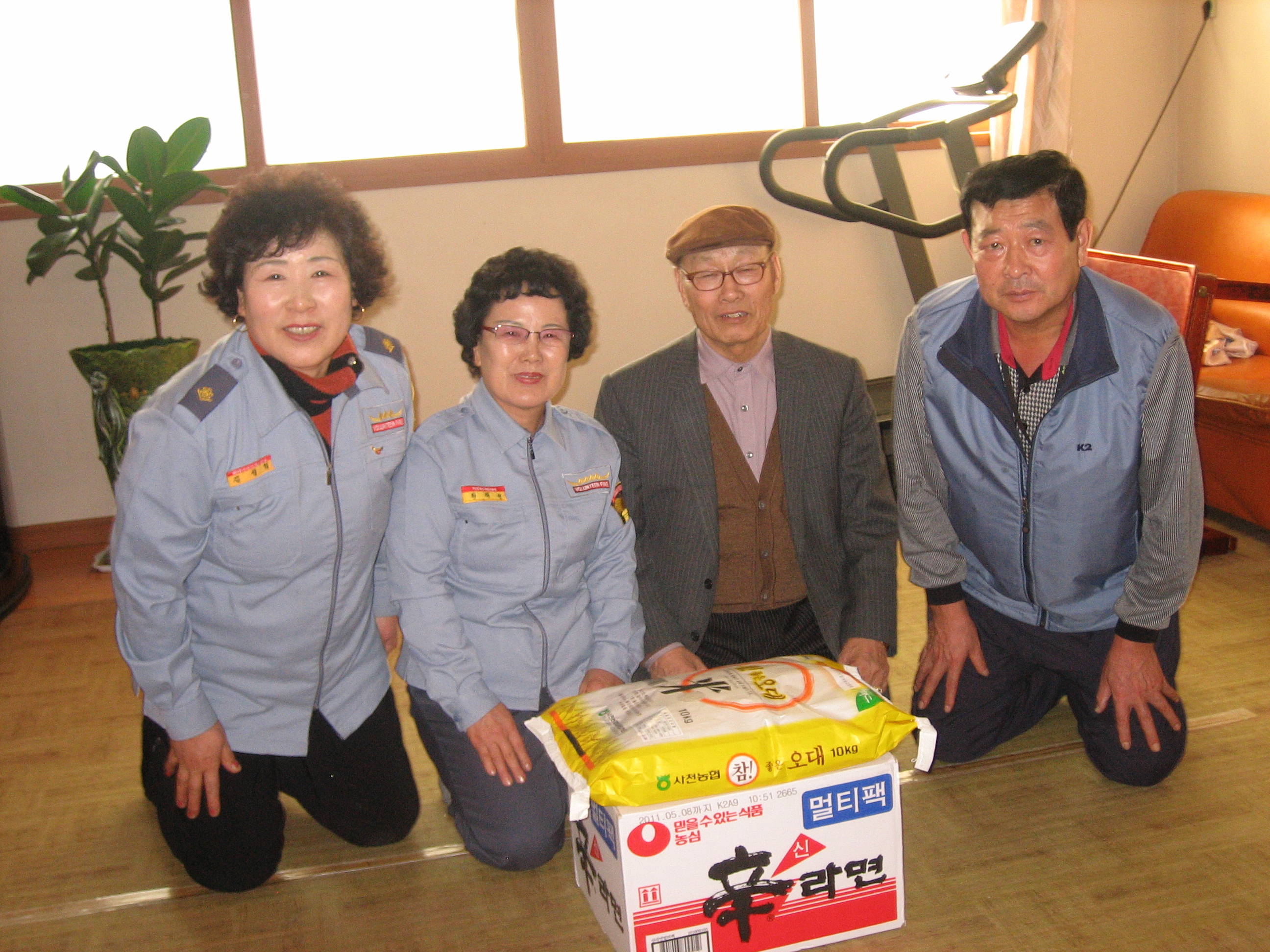 경로당에 라면과 쌀 전달 경보기 달기