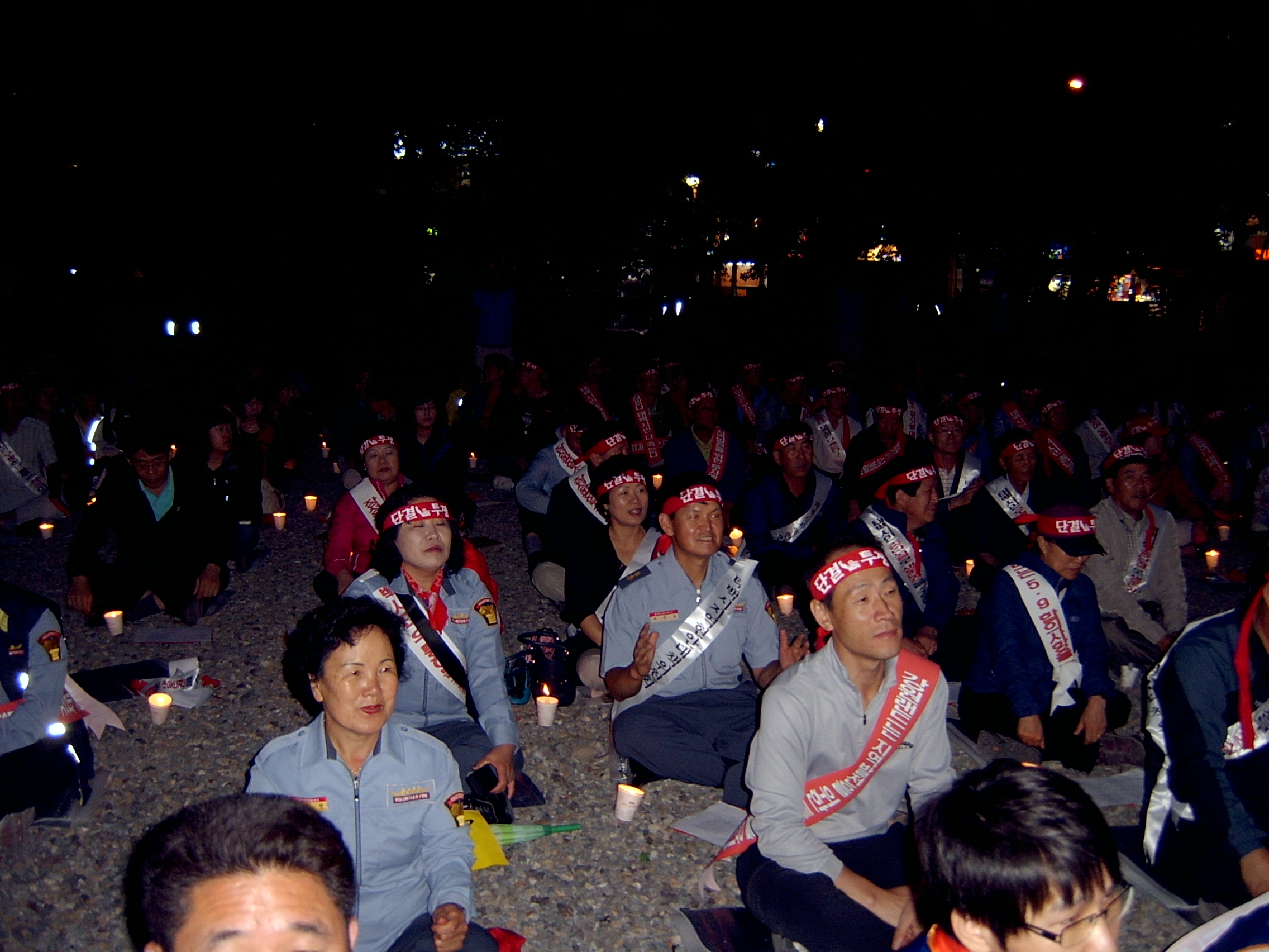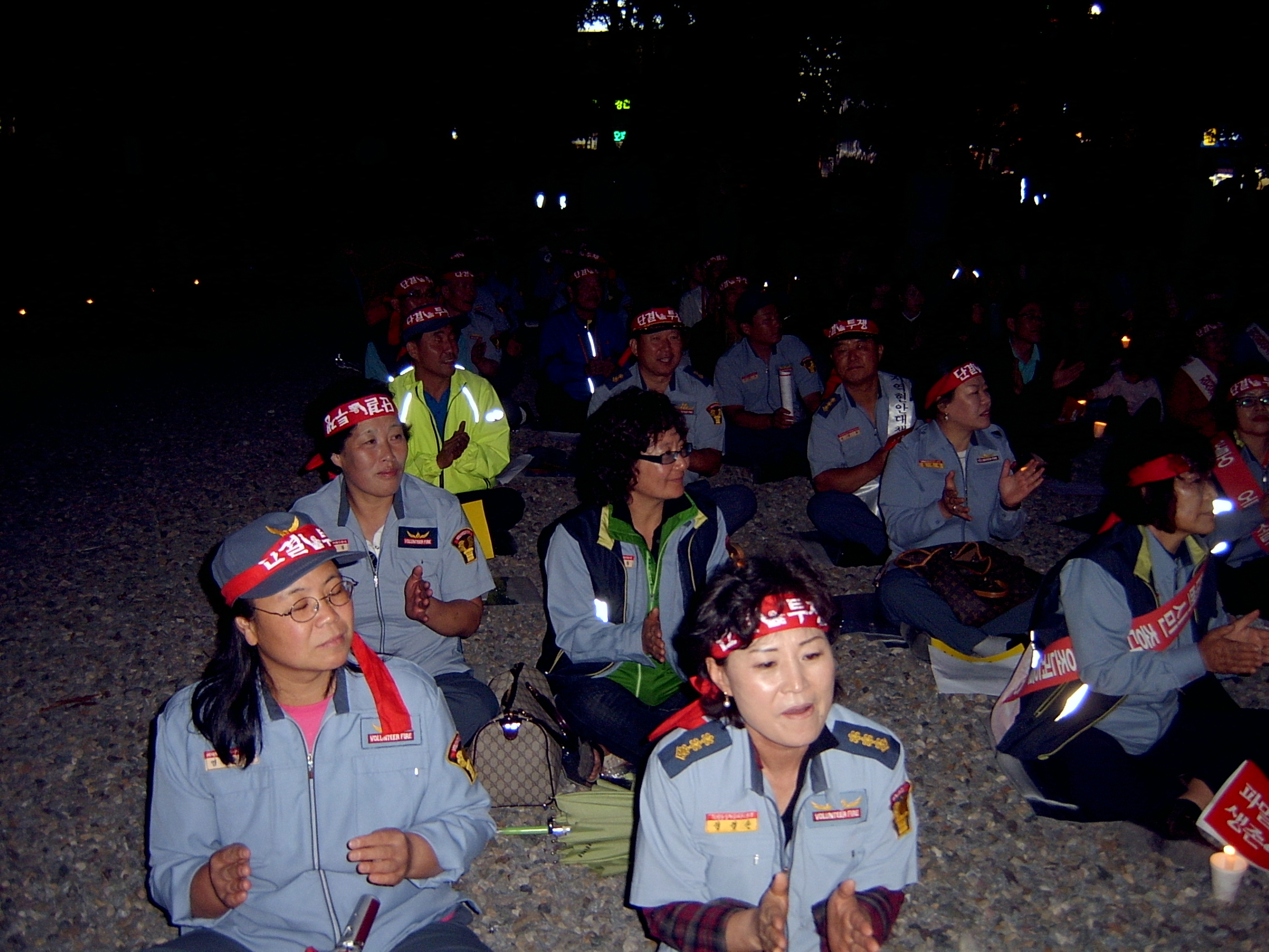 궐기대회에 단체의 일원으로 참석 시민들과합께 힘을 합치는 의용소방대원들