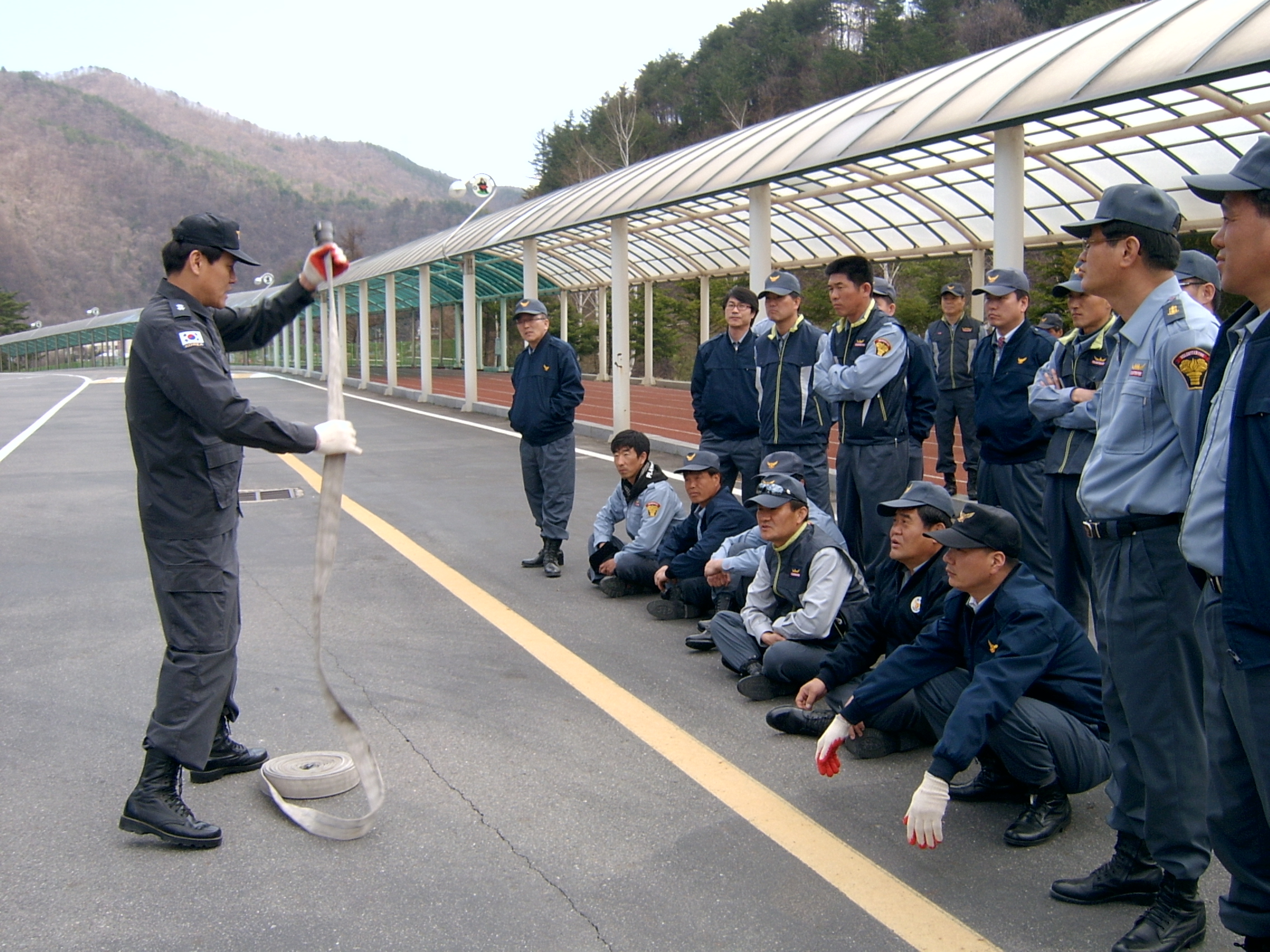 2012, 4월 18일 태백종합경기주차장의 넓은 공터에서 실전을 방불케하는 남성의용소방대전원이 참석한가운데 4월 정기교육이 있었습니다 .