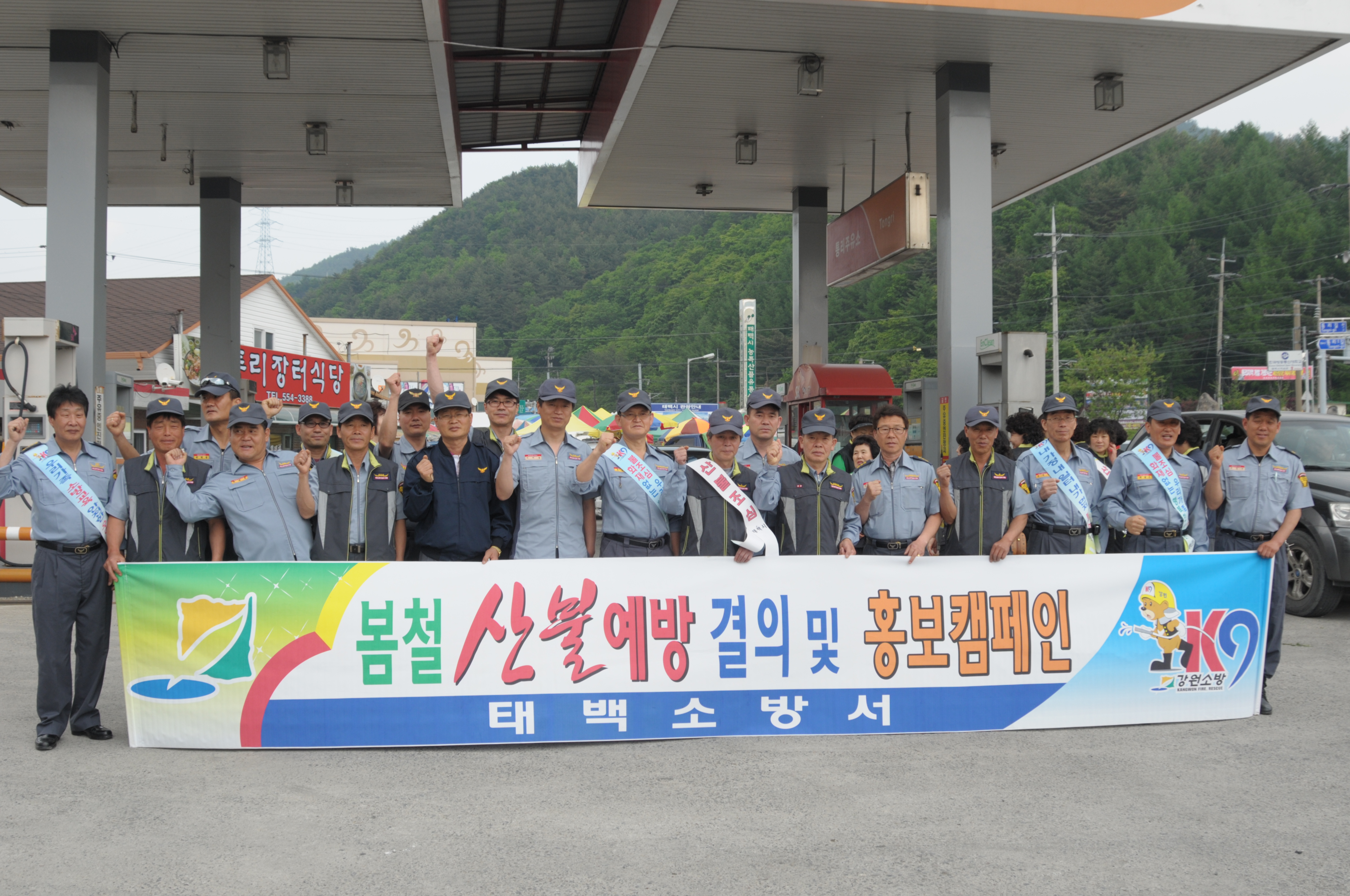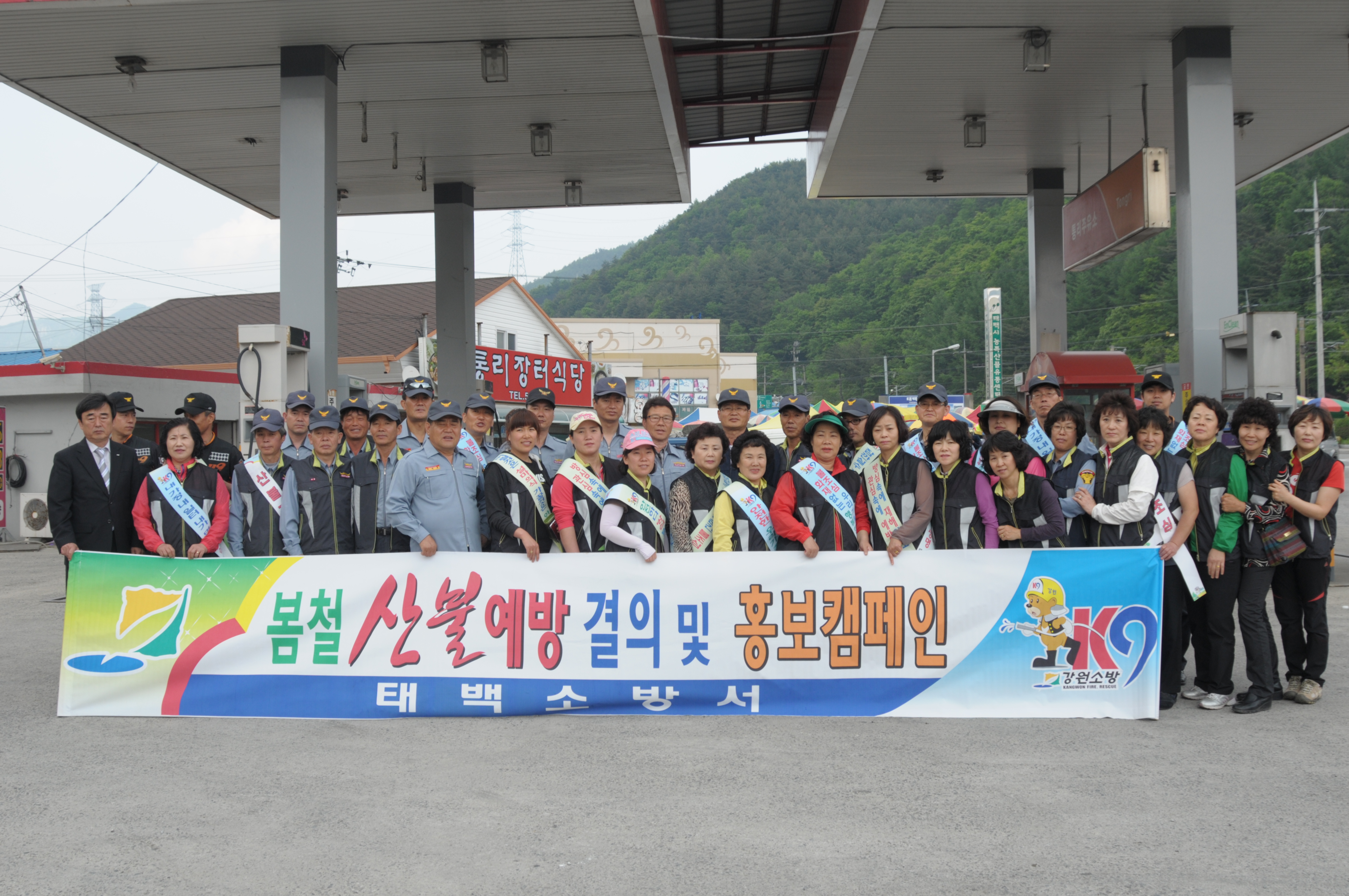 의소대 대원들과 소방서 직원과 함께 통리시장 산불예방 캠폐인 현장 이모 저모