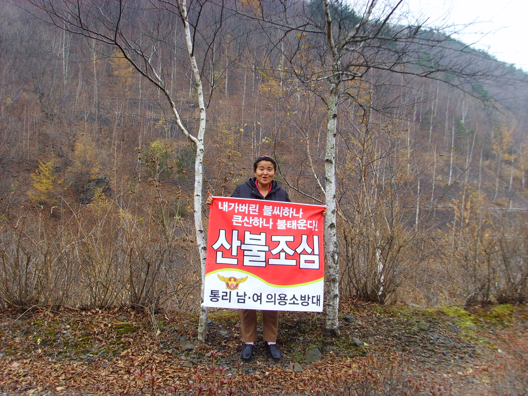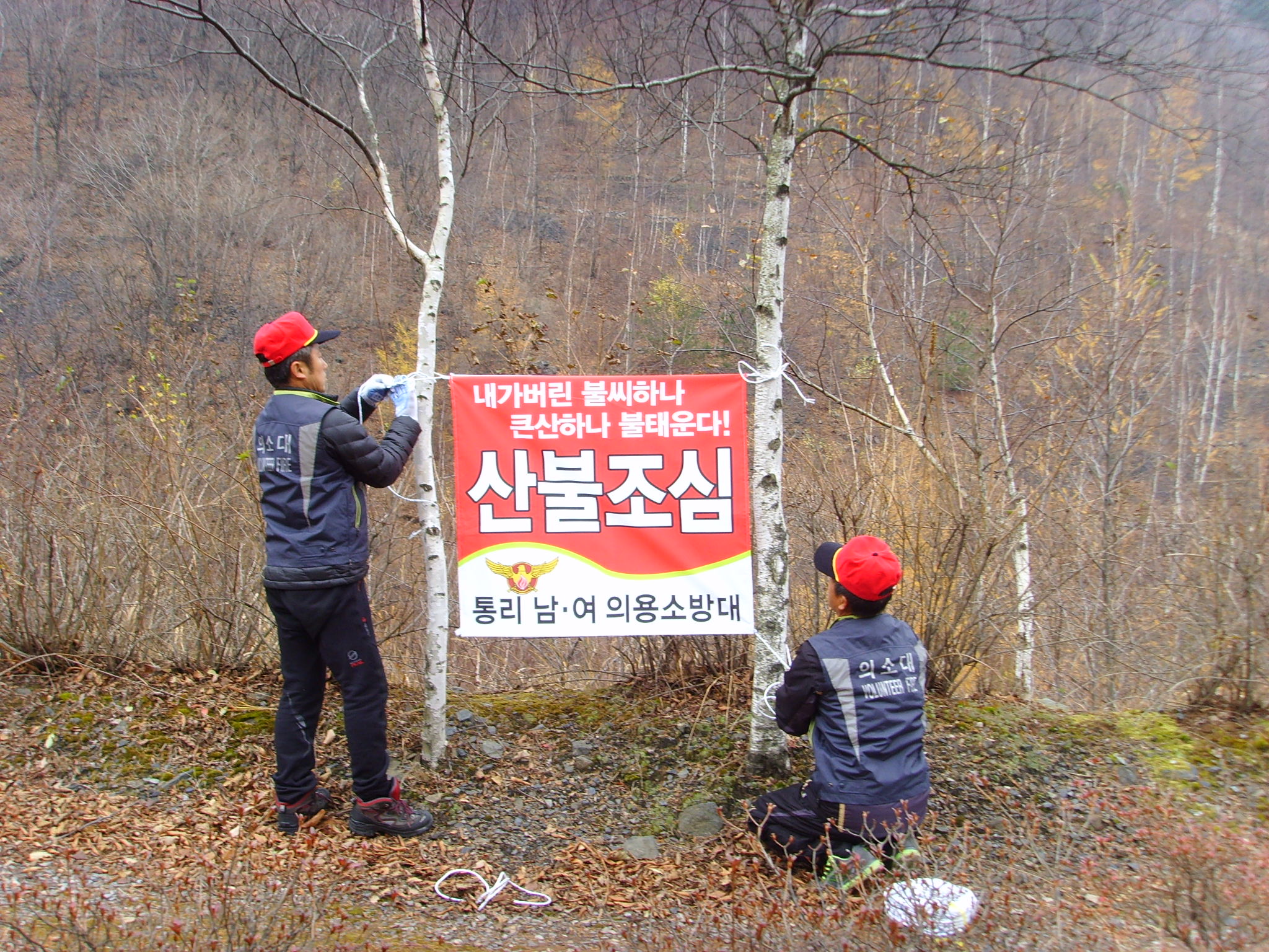 통리의소대 산불조심 현수막 달기