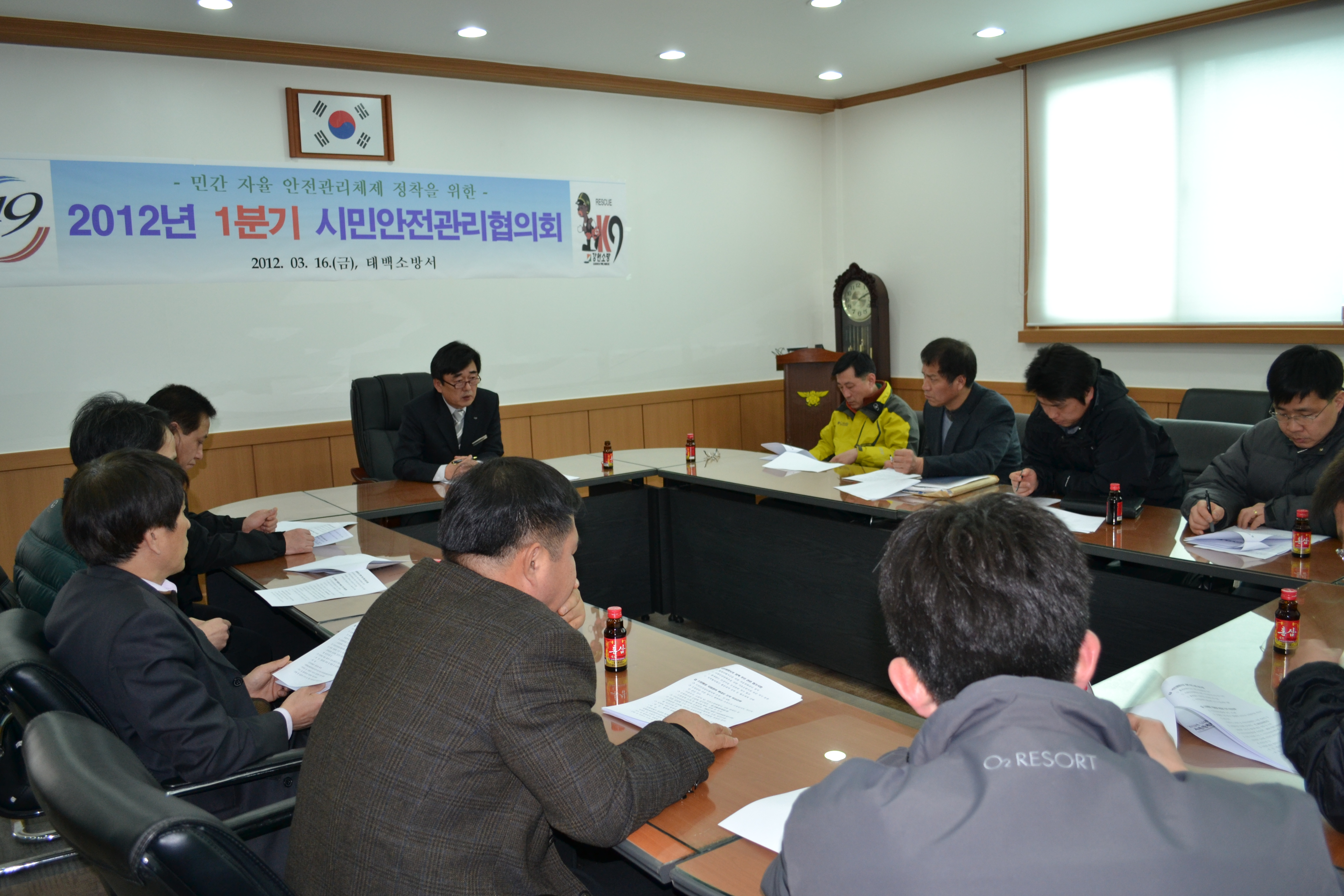 태백소방서(서장 여윤길)는 16일(금) 오후 2시 소방서 2층 소회의실에서 황지자유시장 조합장 김진현 회장 외 18명 임원이 참석한 가운데 건축물 대형대상 효율적인 자율방화관리를 위한 1분기 시민안전관리협의회를 개최했다.