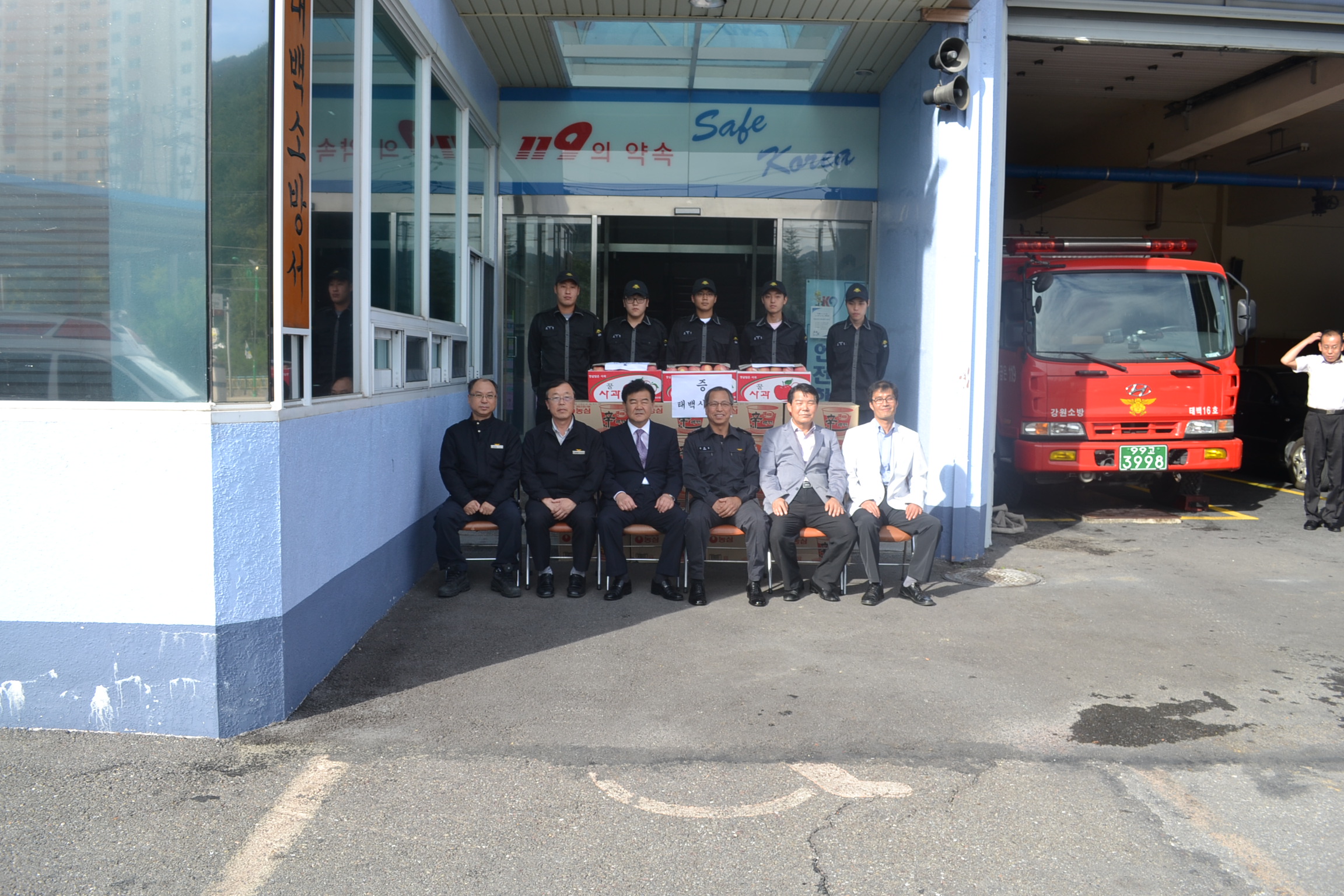 태백시의회 고재창 의장님외 2분(시의회의원)께서 추석절을 맞이하여 태백소방서 근무중인 공익근무요원을 위문방문을 하셨습니다, 위문품 전달과 따뜻한 격려의 말씀이 있었습니다.