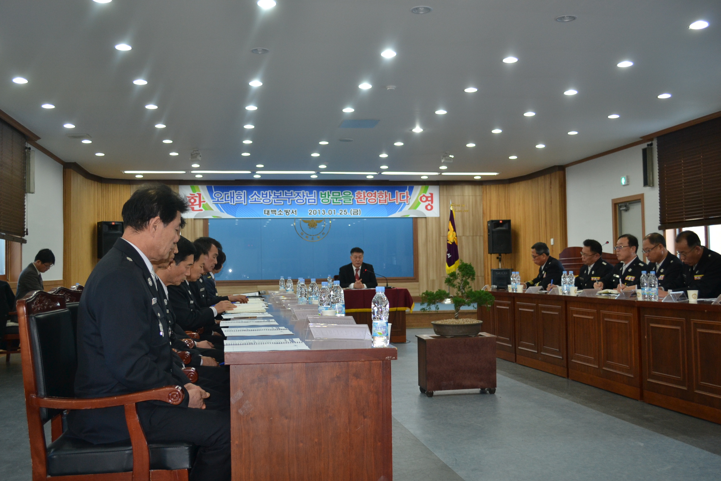 강원도 소방본부장께서 태백소방서(서장 김진봉)에 2013. 1.25(금) 방문하시어 안전사고가 없는 한해, 청렴한 공직자로서의 자세 등에 대한 당부의 말씀을 하셨읍니다.