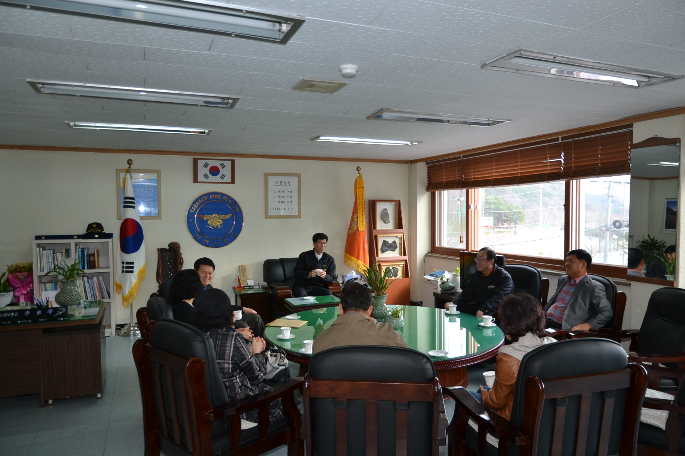 태백소방서(서장 이동학)는 2013년 4월 11일 17시 소방서 소회의실에서 지석호 태백의용소방대장 과 각의용소방대장이 함께 참석하여 지역사회 안전 확보에 크게 기여하는 의용소방대로 거듭나기 위해 소방행정 발전방향 과 당면사항에 대한 간담회를 실시하였읍니다.