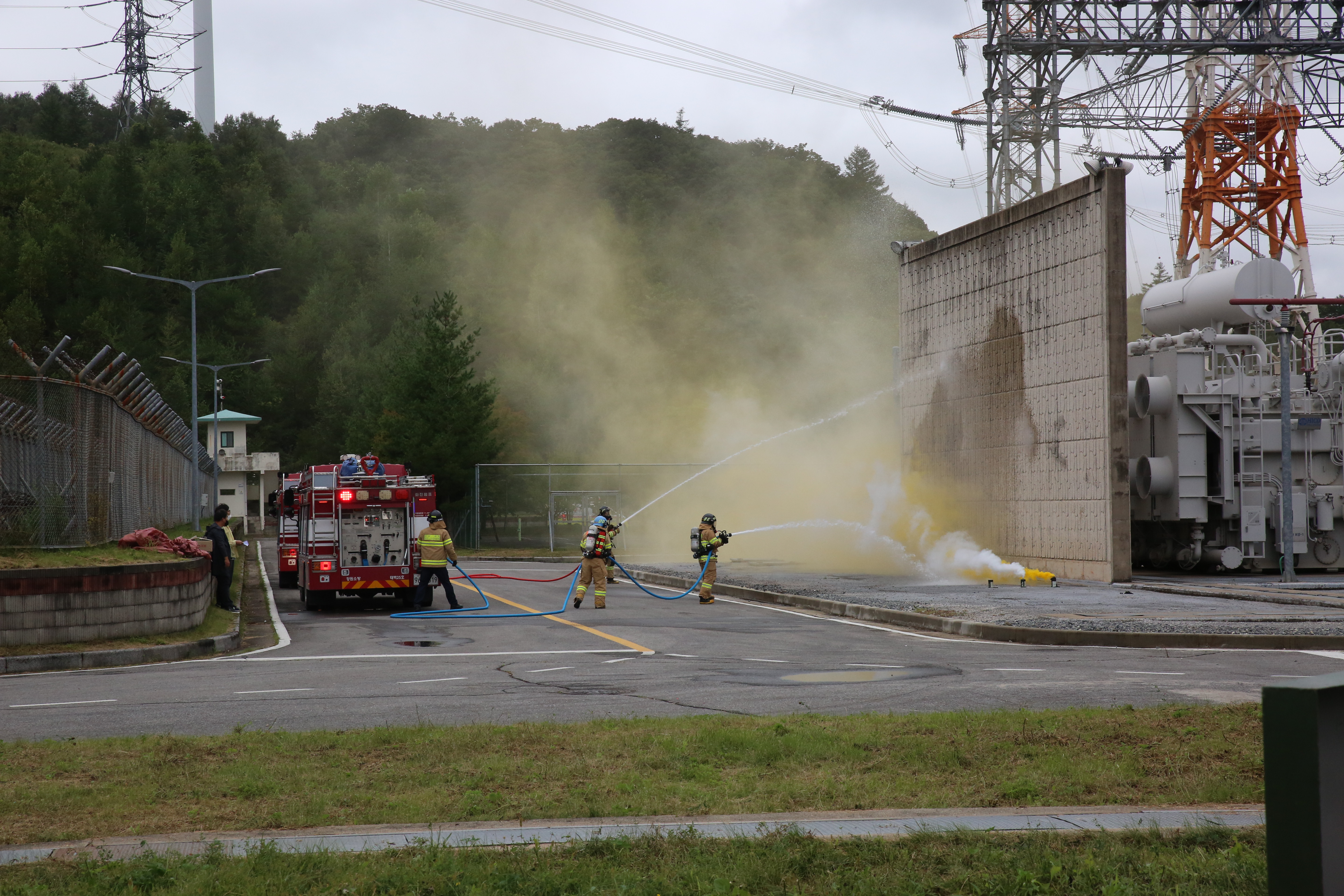 태백소방서(서장 김재석)는 24일 오전 11시 한국전력태백전력지사 신태백변전소에서 국가중요시설 테러발생 상황을 가정해 유관기관과의 협조체계, 피해 최소화 대책 등을 점검하기 위한 실제훈련에 참여했다.