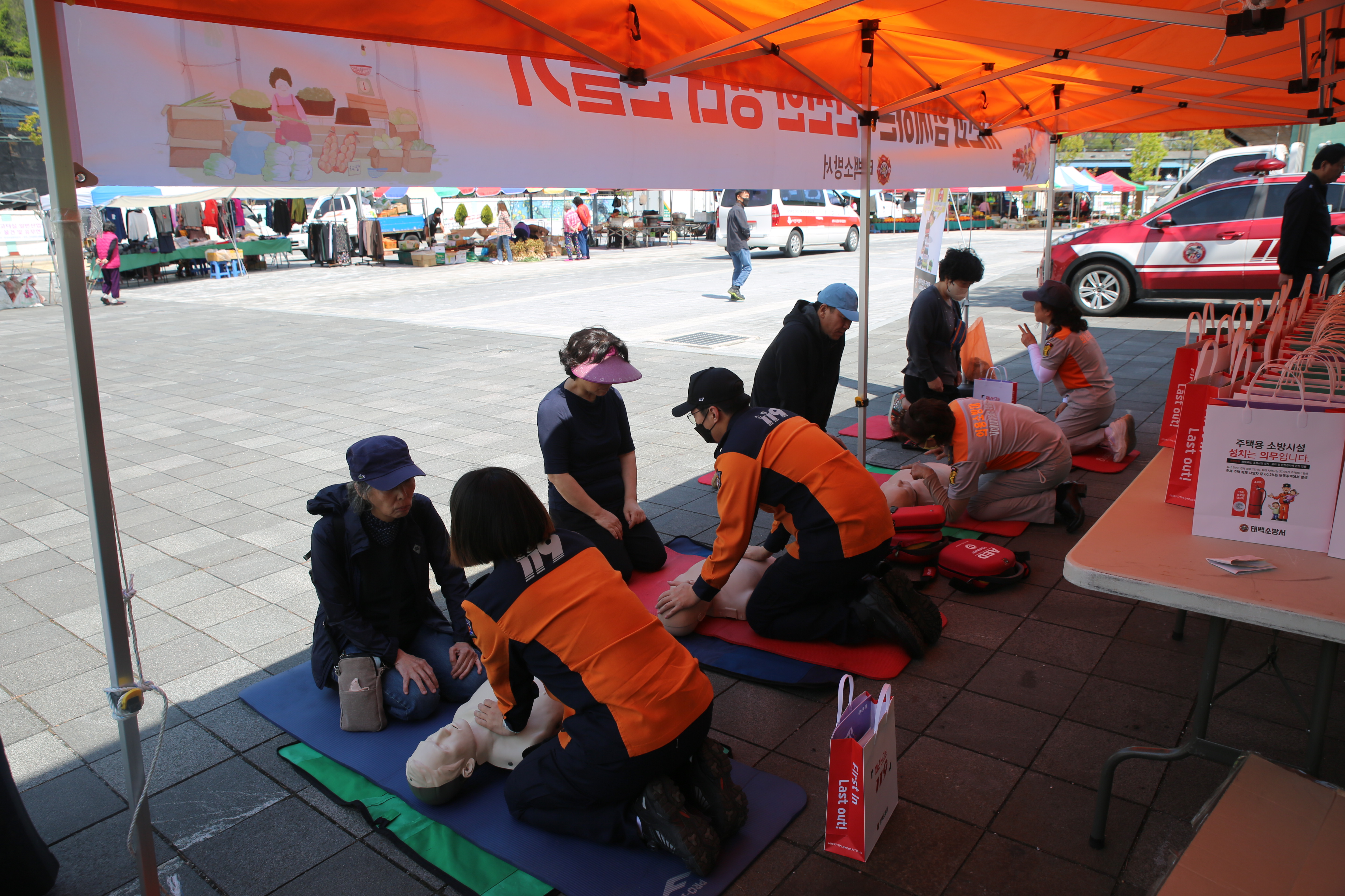 이번 안전한 장터 만들기는 태백소방서 봄철 소방안전대책 특수시책 일환으로 장터 방문 시민 및 관광객 대상으로 화재예방 의식 고취와 안전문화 확산하기 위해 추진됐다.