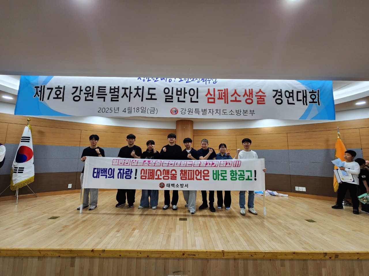 4월 18일 영월에서 열린 도민의 심폐소생술 및 응급처치 능력 향상을 위한 제7회 강원특별자치도 일반인 심폐소생술 경연대회에 태백 대표 2팀이 참가했습니다!
