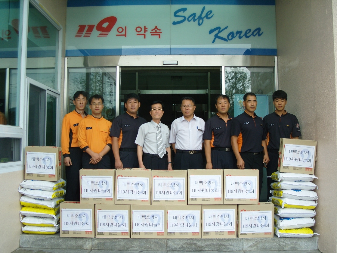 태백소방서 사랑나눔회에서는 2006년부터 태백시내 초등학생 결식아동 15명에게 학교를 졸업할 때까지 급식비를 지원하고 있는데 여름방학동안 학교에서 급식을 하지 못하는 것을 감안하여 1인당 쌀20kg와 라면1상자씩을 전달한다. 이번에 지원하는 물품은 840,000원 상당이다.