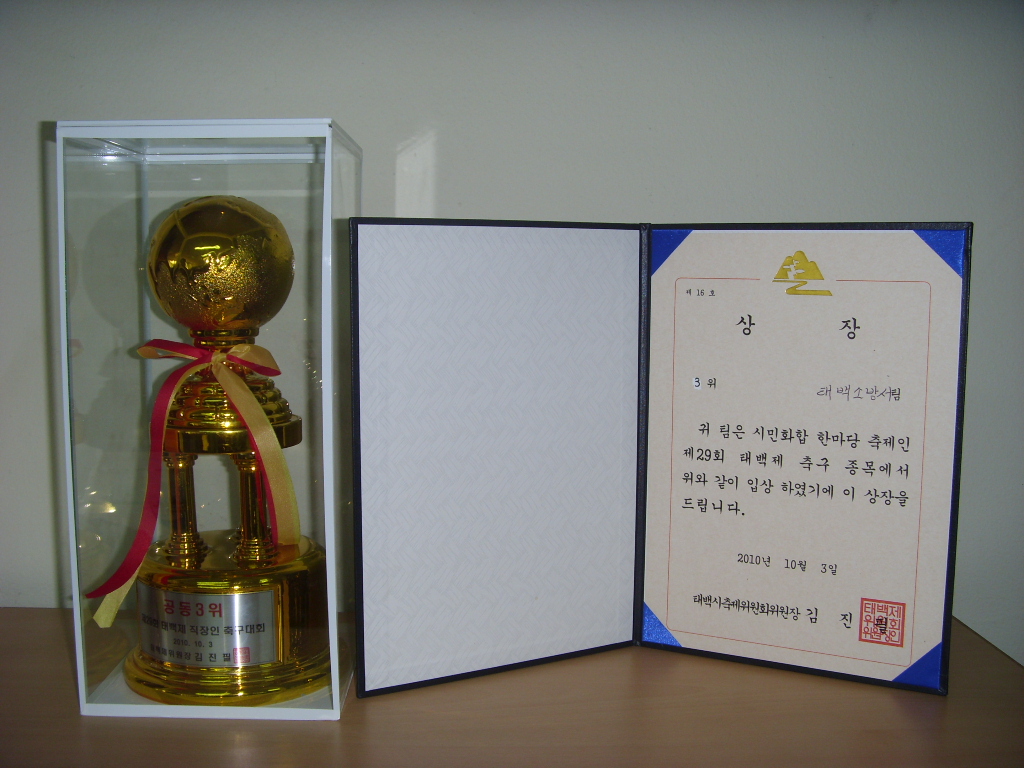 지난 10월 2~3일 제29회 태백제 직장부축구대회에서 태백소방서(서장 여윤길) 축구부가 우수한 성적을 거두었습니다.