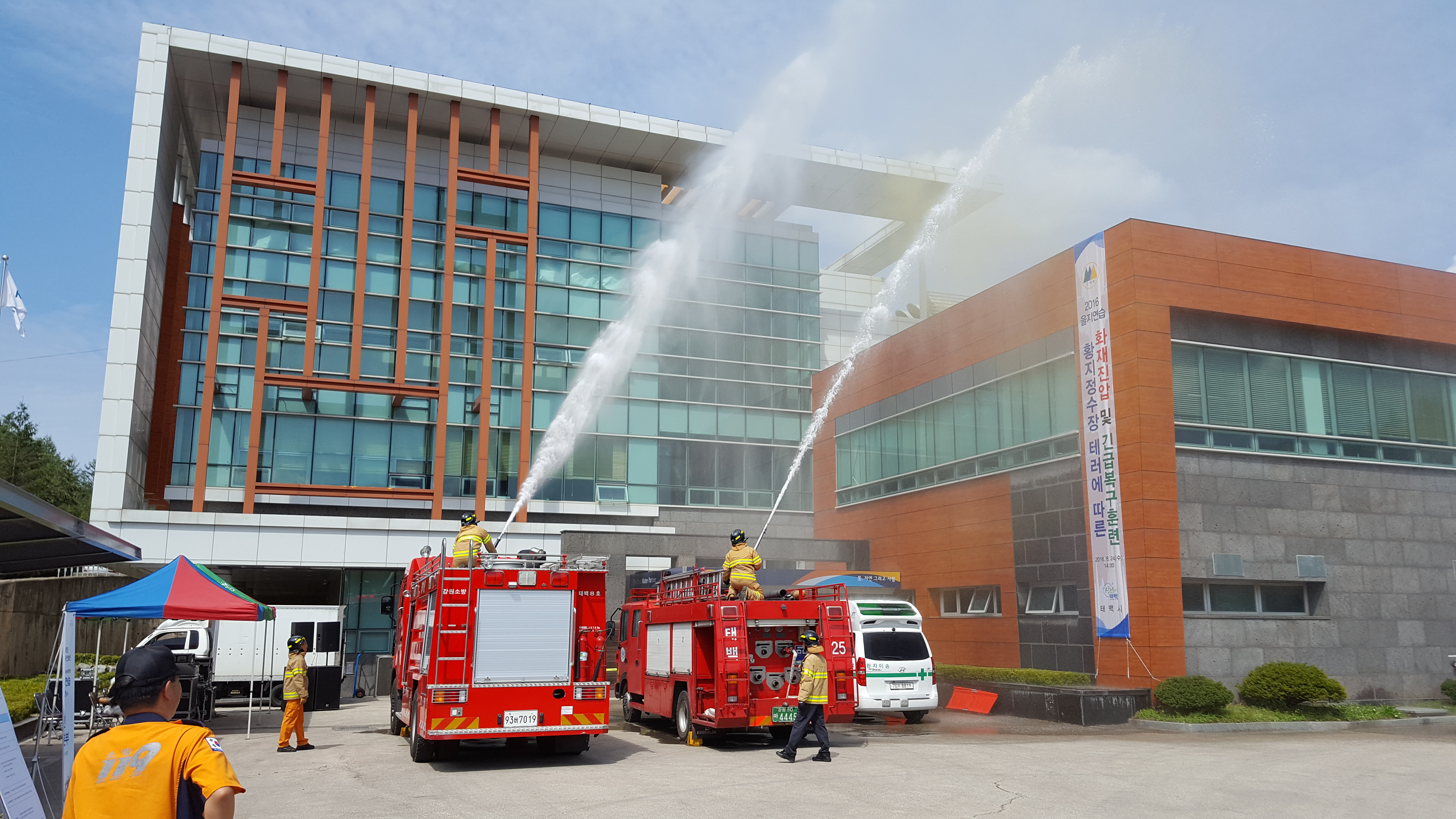 ○ 태백소방서(서장 석교준)는 23일 오전 14시부터 2016 을지연습 실제훈련을 한국수자원공사 태백권관리단 황지정수장에서 실시했다.