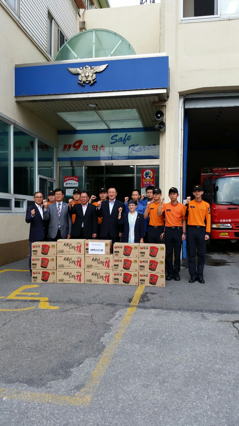 심용보 태백시의회 의장 외 3명은 9일 14시 다가오는 추석절을 맞이하여 태백소방서를 방문 위문품을 전달하고 격려하였다.