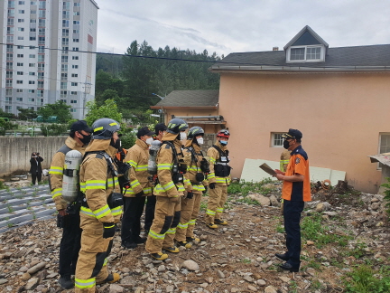 태백소방서, 안전한 지붕파괴 절차 훈련 실시