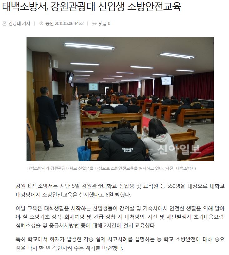 강원관광대 학생 및 직원대상 500여명 안전교육 실시함