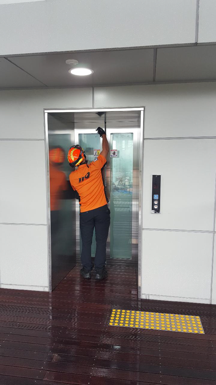 태백소방서, 승강기에 고립된 관람객 5명 안전구조
