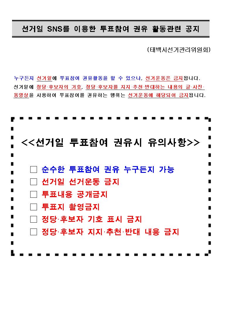 선거일 SNS를 이용한 투표참여 권유 활동관련 공지