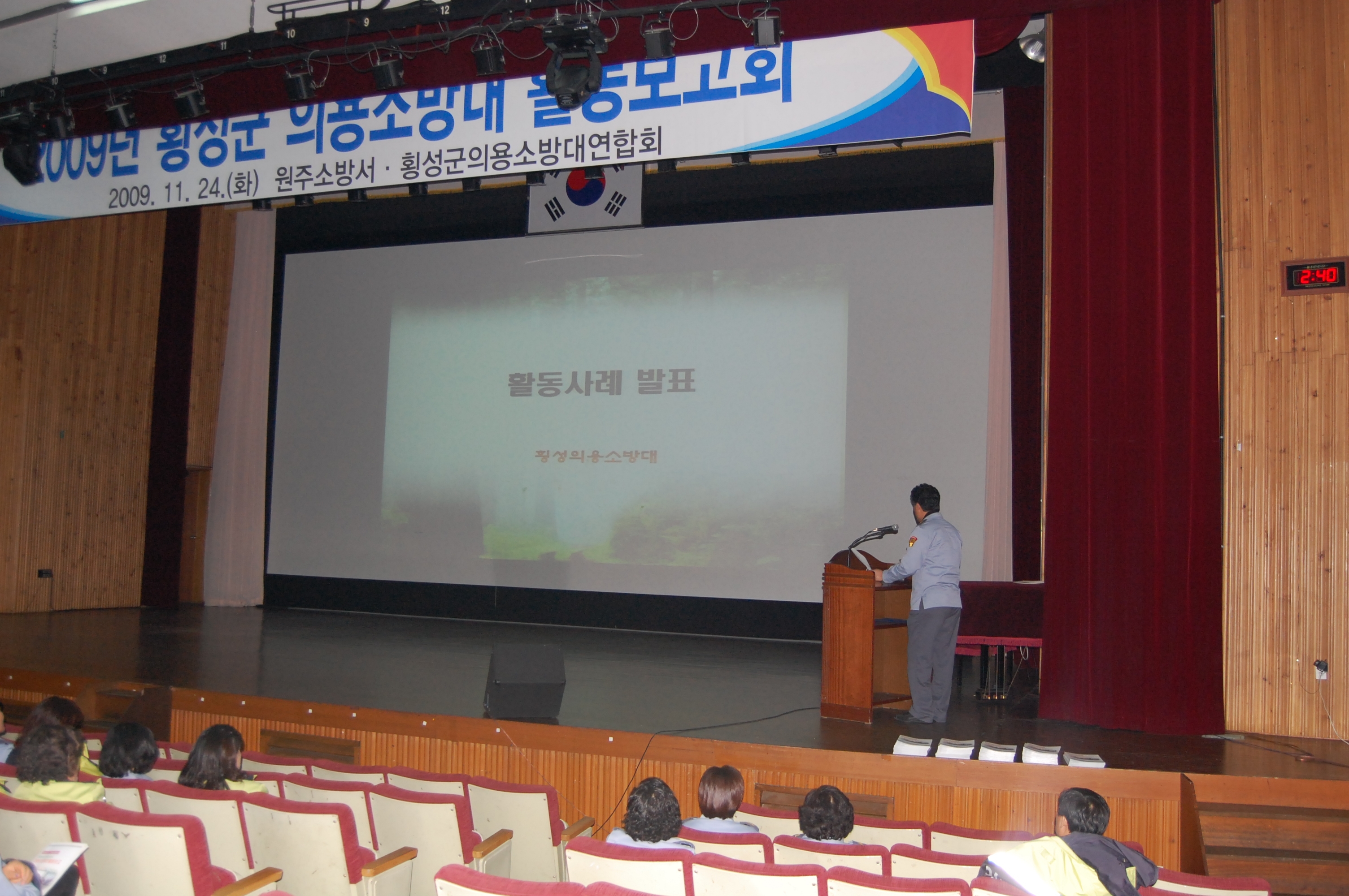 원주소방서(서장. 조근희), 횡성군의용소방대연합회(회장. 정재혁, 여성회장. 김순자) 주최로 개최된 2009년 횡성군 의용소방대 활동보고회가 성황리에 열렸습니다.