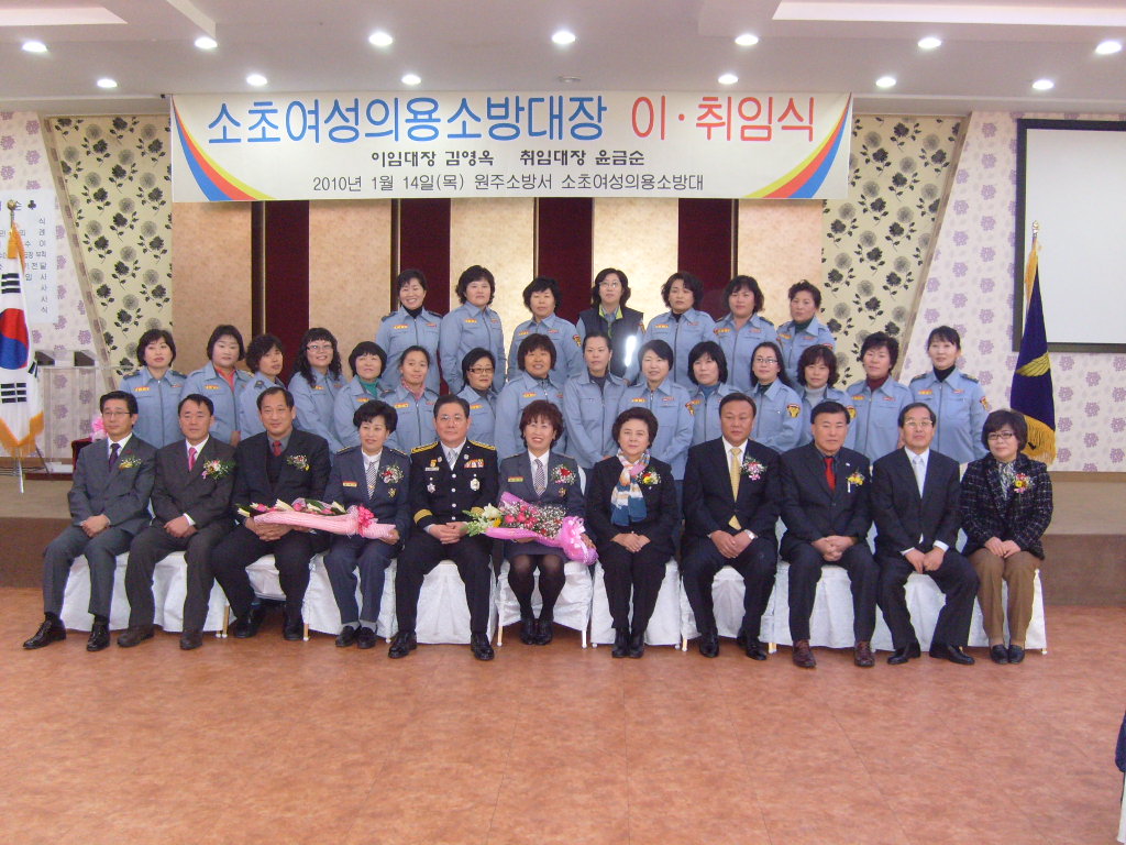 원주소방서(서장 조근희) 소초여성의용소방대 대장 이취임식이 2009년 1월 14일 11시 태장동 아모르 컨벤션웨딩홀에서 열렸습니다.