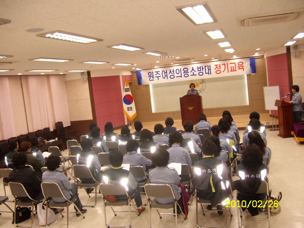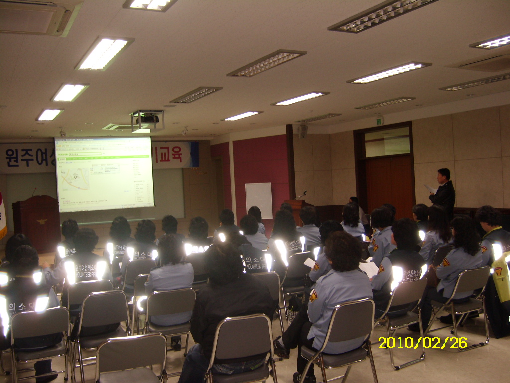 원주여성의용소방대에서는 2010년 2월 26일 (금) 원주소방서 대회의실에서 정기교육을 실시하였습니다.
