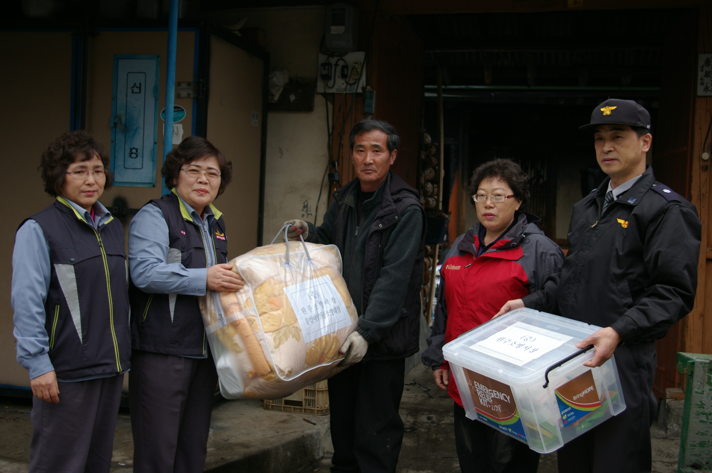 저희 흥업의용여성대가 조금이나마 힘이 되어드리고자 구호물품을 전달해 드렸습니다.