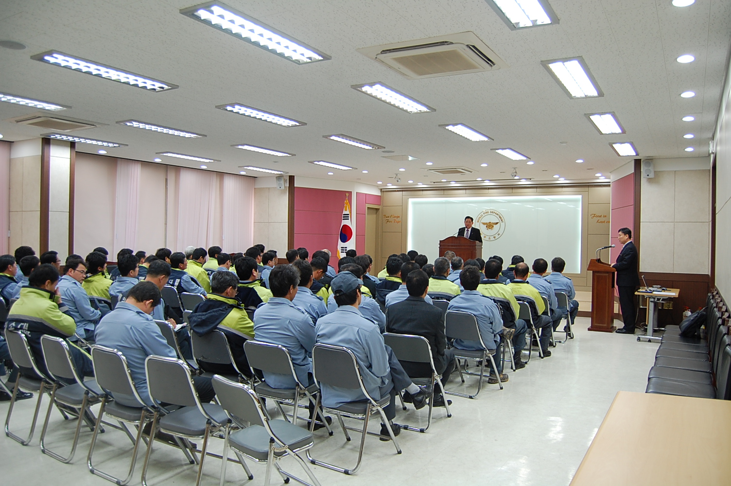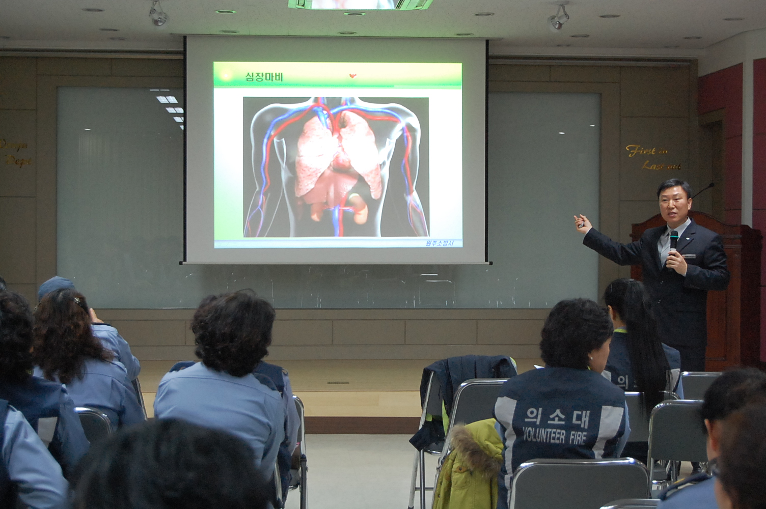 원주소방서(서장. 조근희)는 의용소방대 2010년 3월 정기교육을 현장대응능력 및 역량강화를 위하여 본서 대회의실에서 소집교육으로 실시하였습니다.