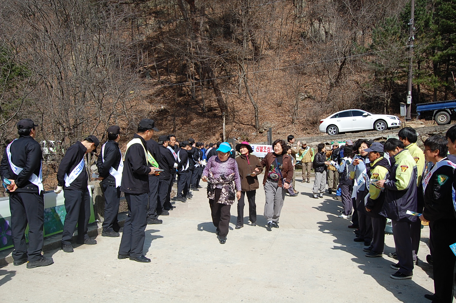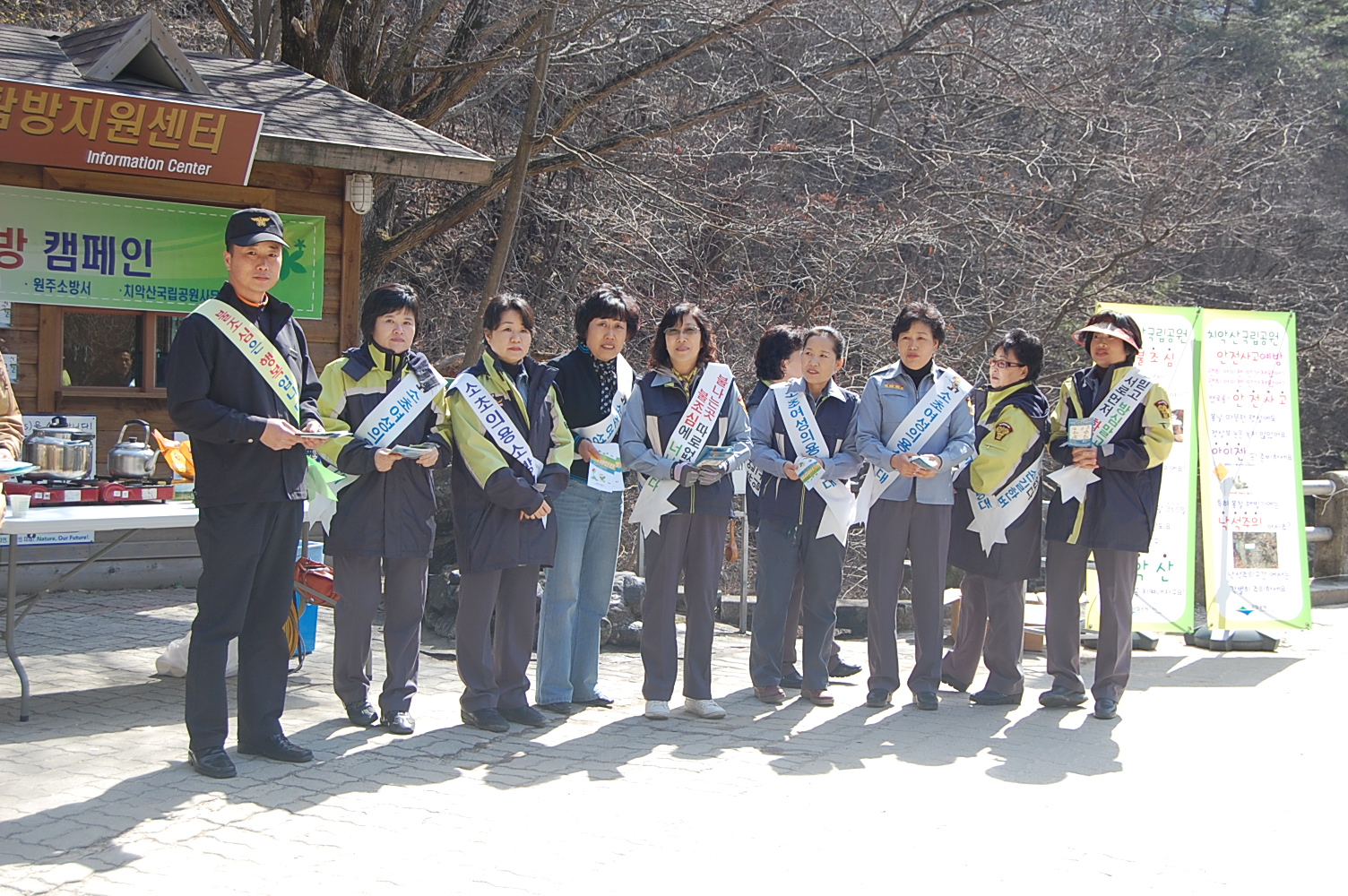 치악산 구룡사는 100여명(소방 71, 의용소방대 20, 국립공원 직원 15)이 참석하여 치악산을 방문하신 등산객을 상대로 안전산행 및 화재예방을 홍보하였고 서장님을 비롯한 직원 일동은 매표소에서 구룡사까지 안전 patrol을 실시하였습니다.