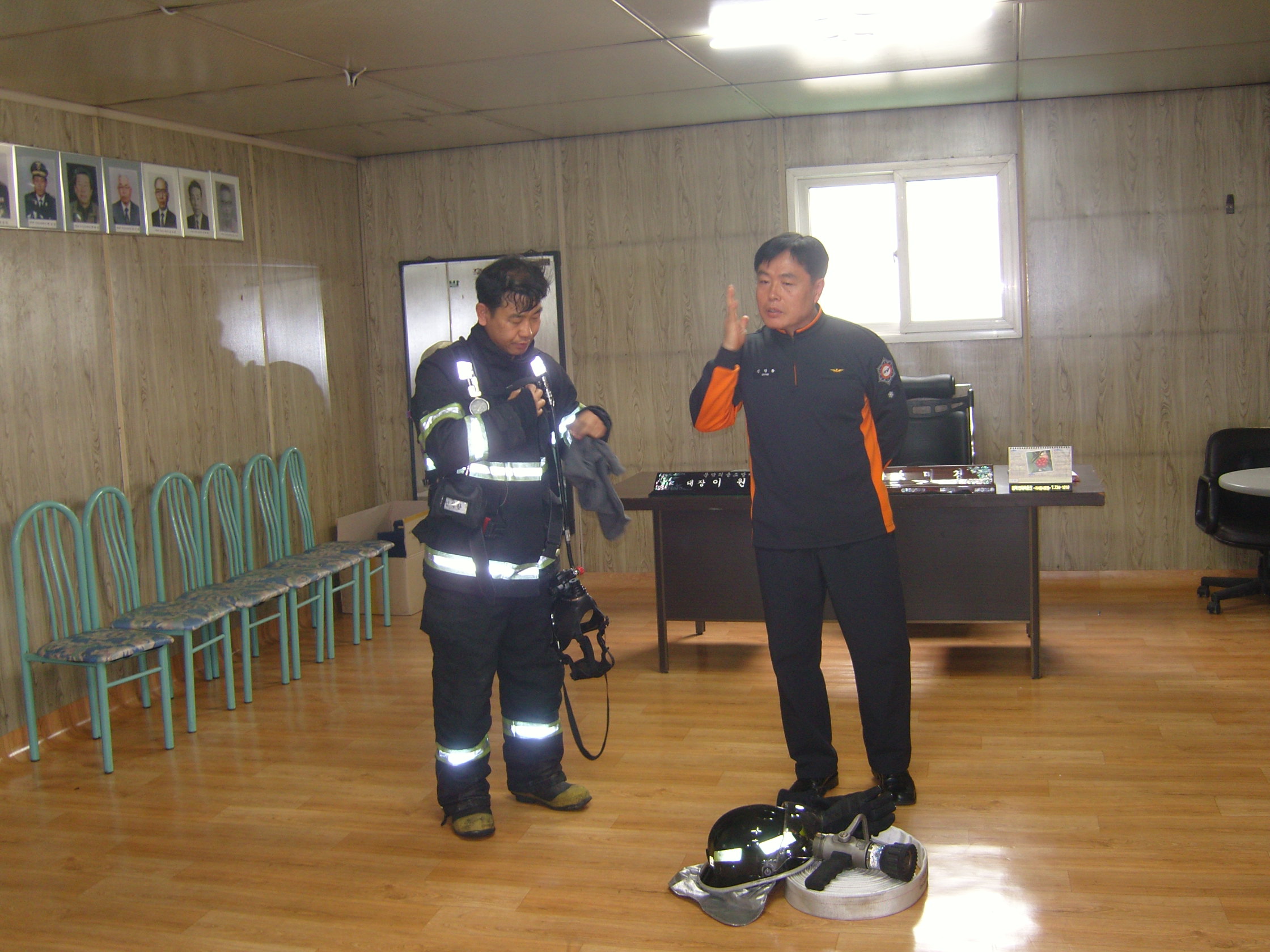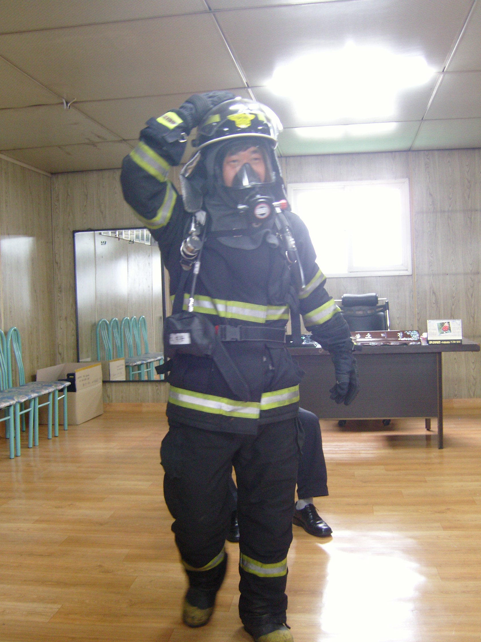 팀장님이 직접 방화복을 착용하시고 입장하셨습니다.
