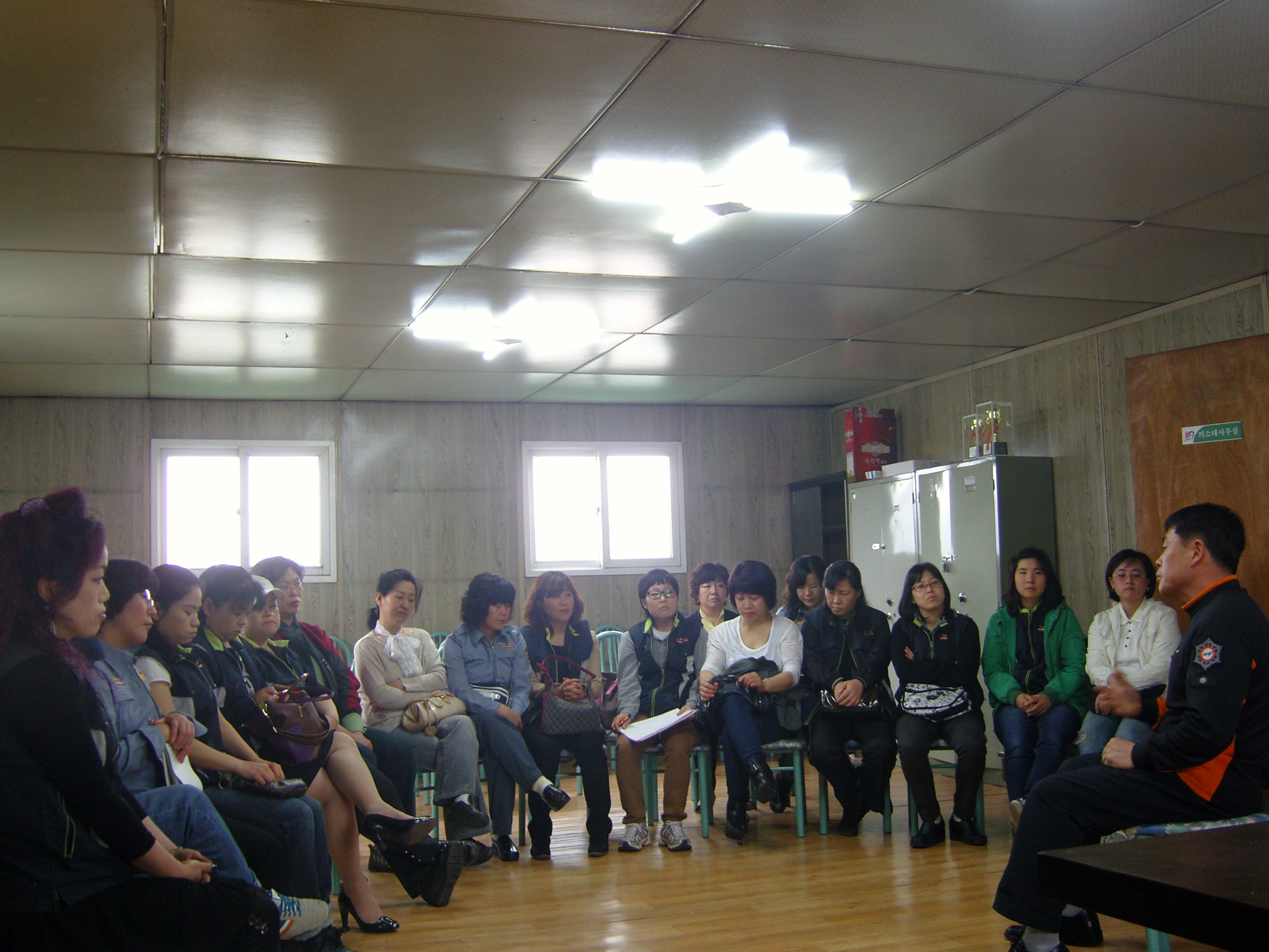 4월 정기교육이 깨끗하고 넓게 새로 단장한 의소대 사무실에서 있었습니다.