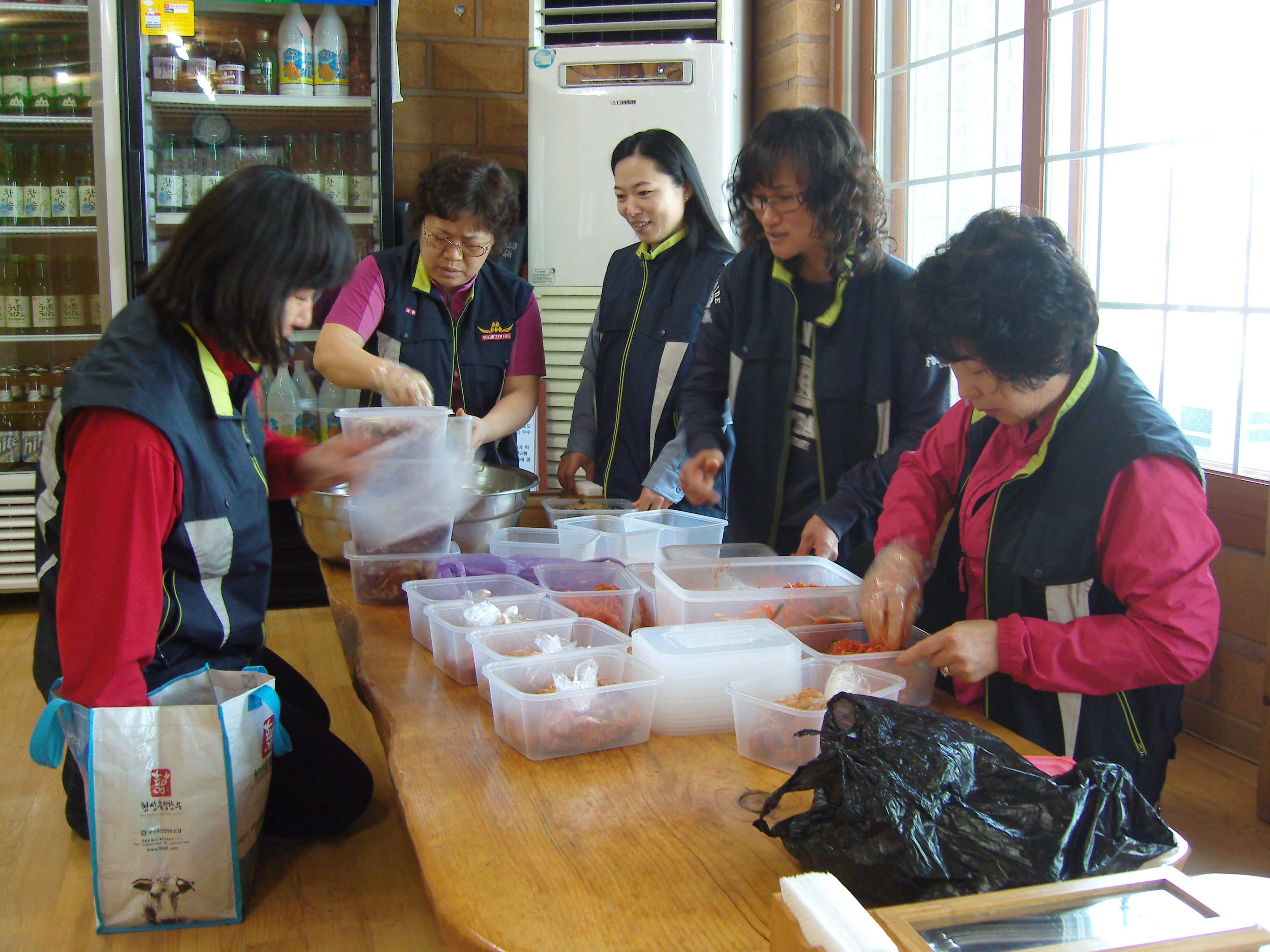 안 여러 어르신들께서 반찬을 드시고 용기를 모아 재활용 할