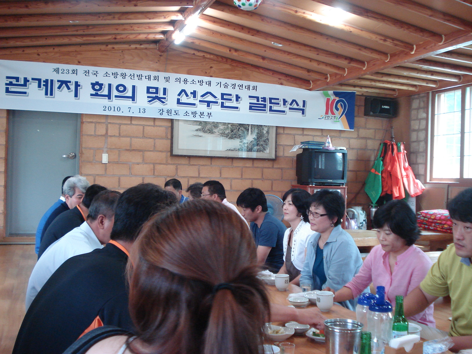 7월13일에 전국소방왕선발대회및 기술경연대회에 참가할 선수들 결단식이 있었습니다. 원주소방서 대회의실에서 회의를 진행 하고 점심식사 장소로 옮겨서 도 소방본부 왕재섭본부장님의 축사와함께 원주소방서 조근희 서장님의 격려사에 힘입어 파워넘치는 결단식을 치르고 왔습니다.원주남여의소대에서는 드래곤 보트 대회에 14명이 참가하게됩니다(남소대9명 여소대5명) 드래곤보트경기는 8월24일 대구에서 펼칩니다. 모두 화이팅!!!