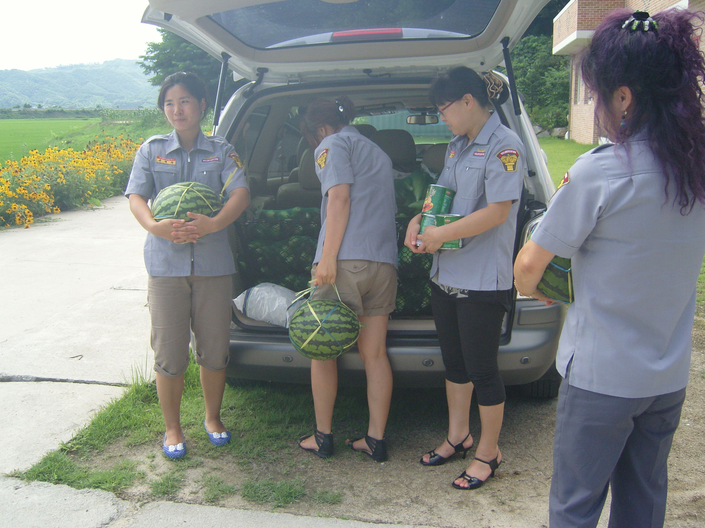 수박과 과일 옥수수를 사가지고 10시30분부터 12시30까지 봉사했습니다.